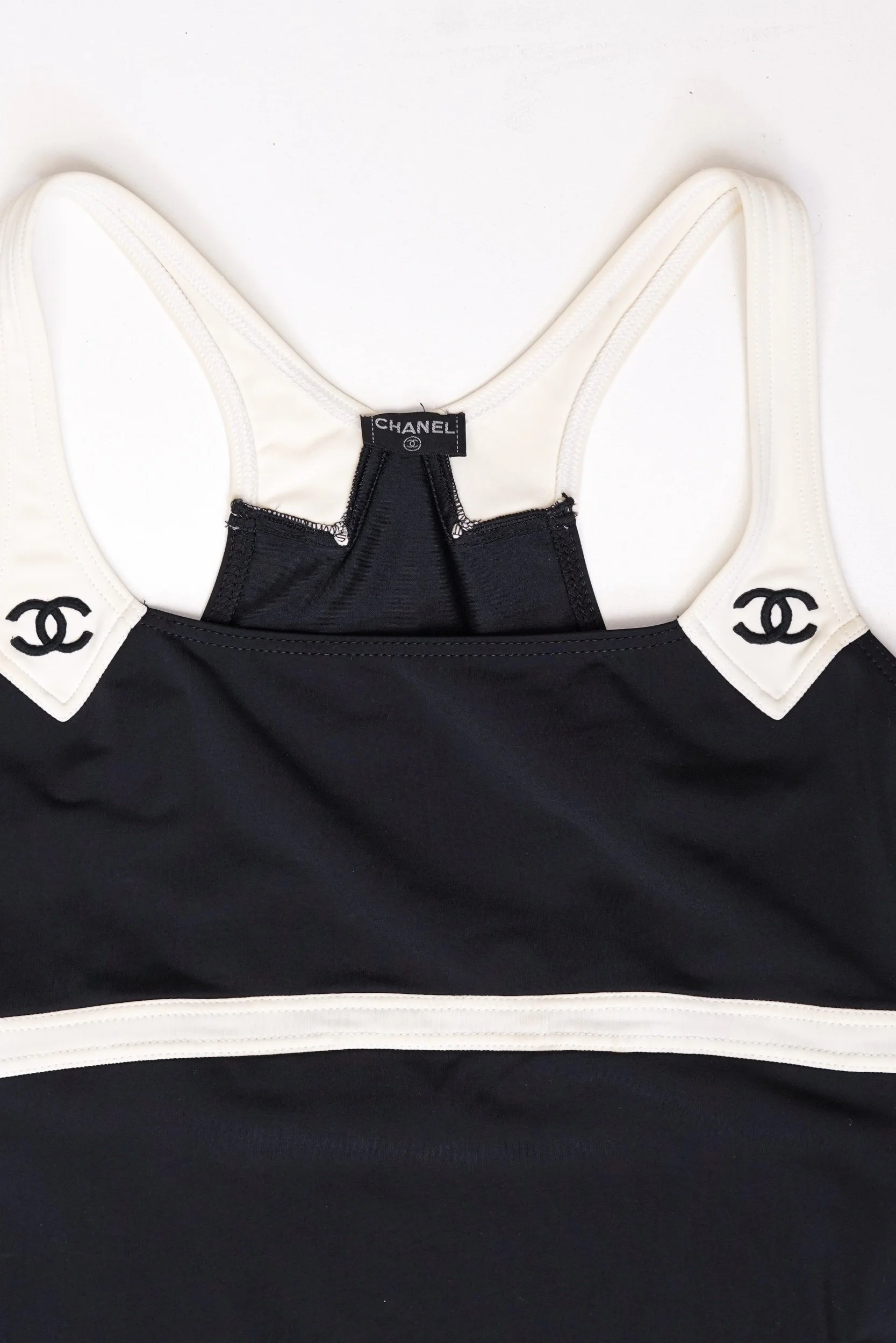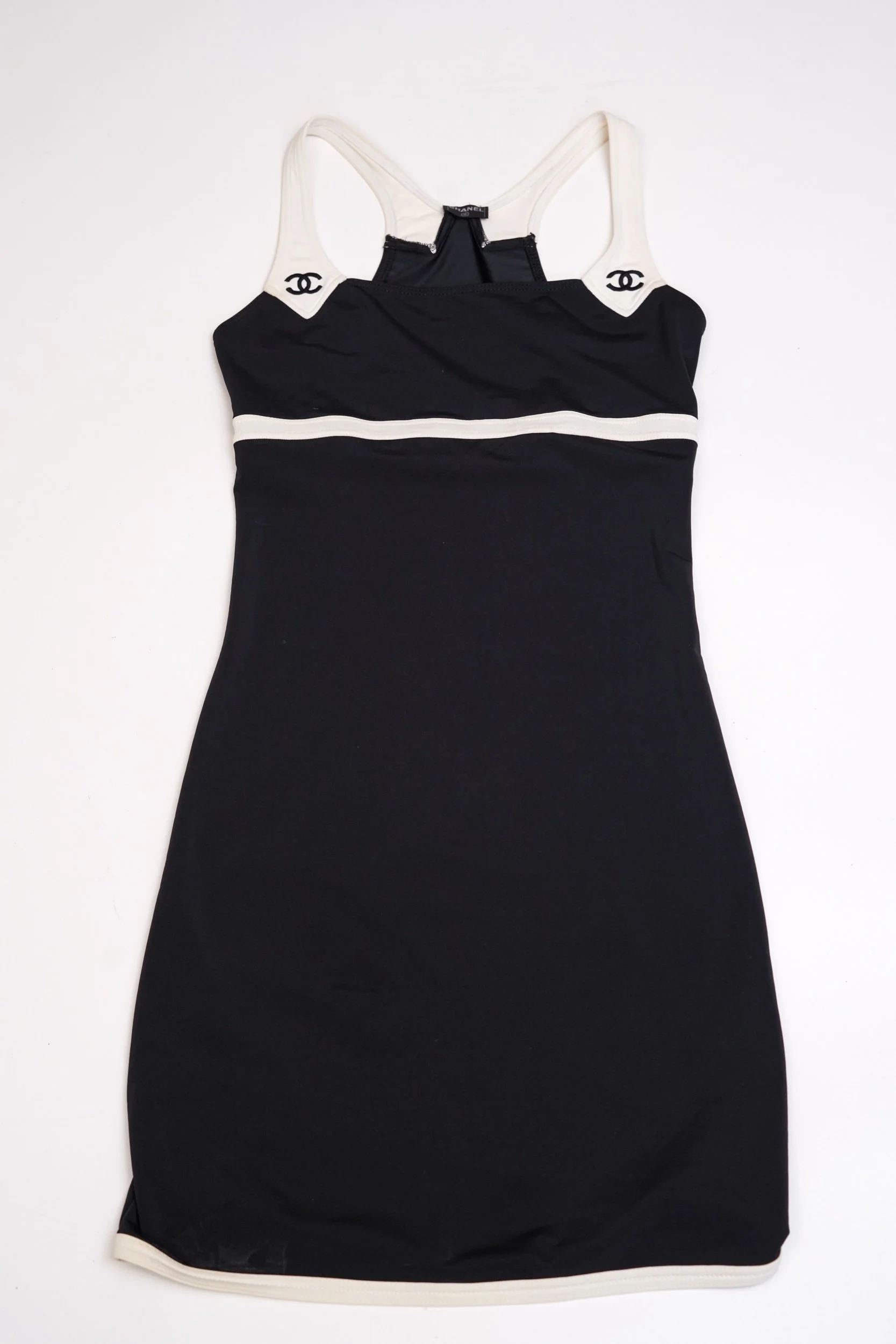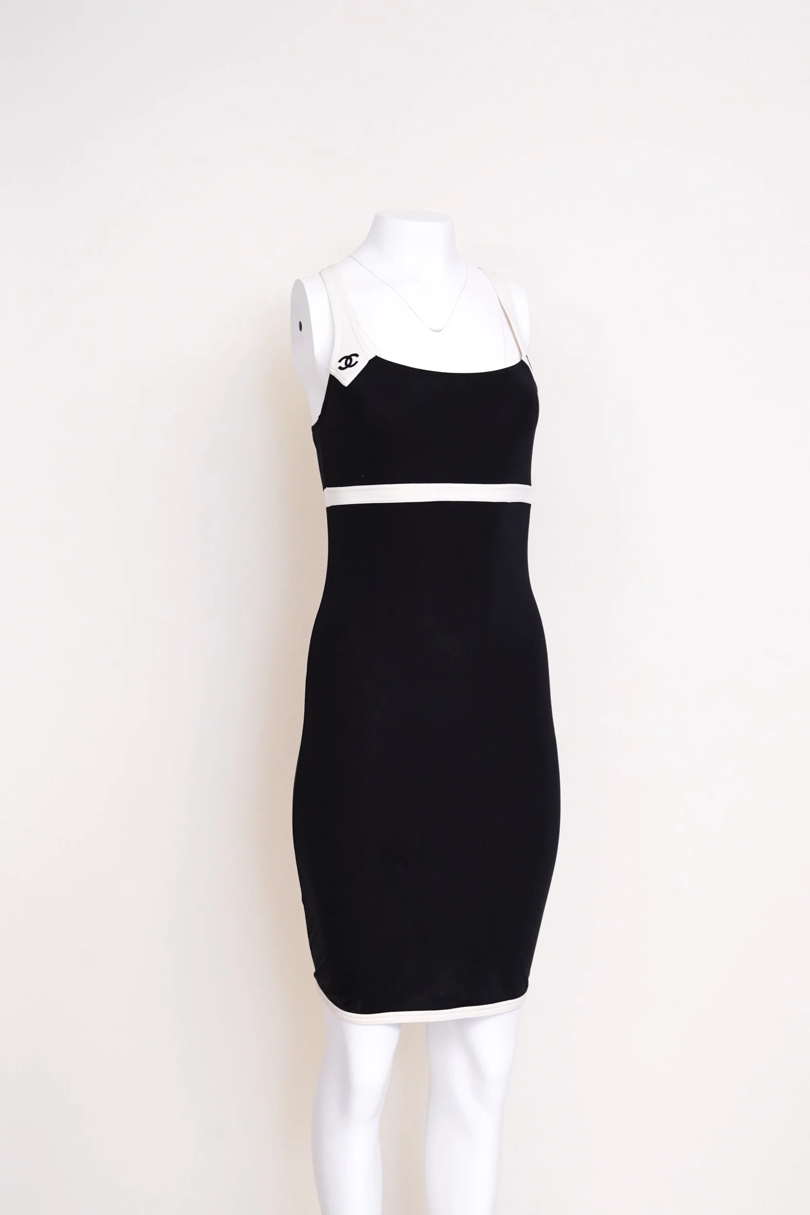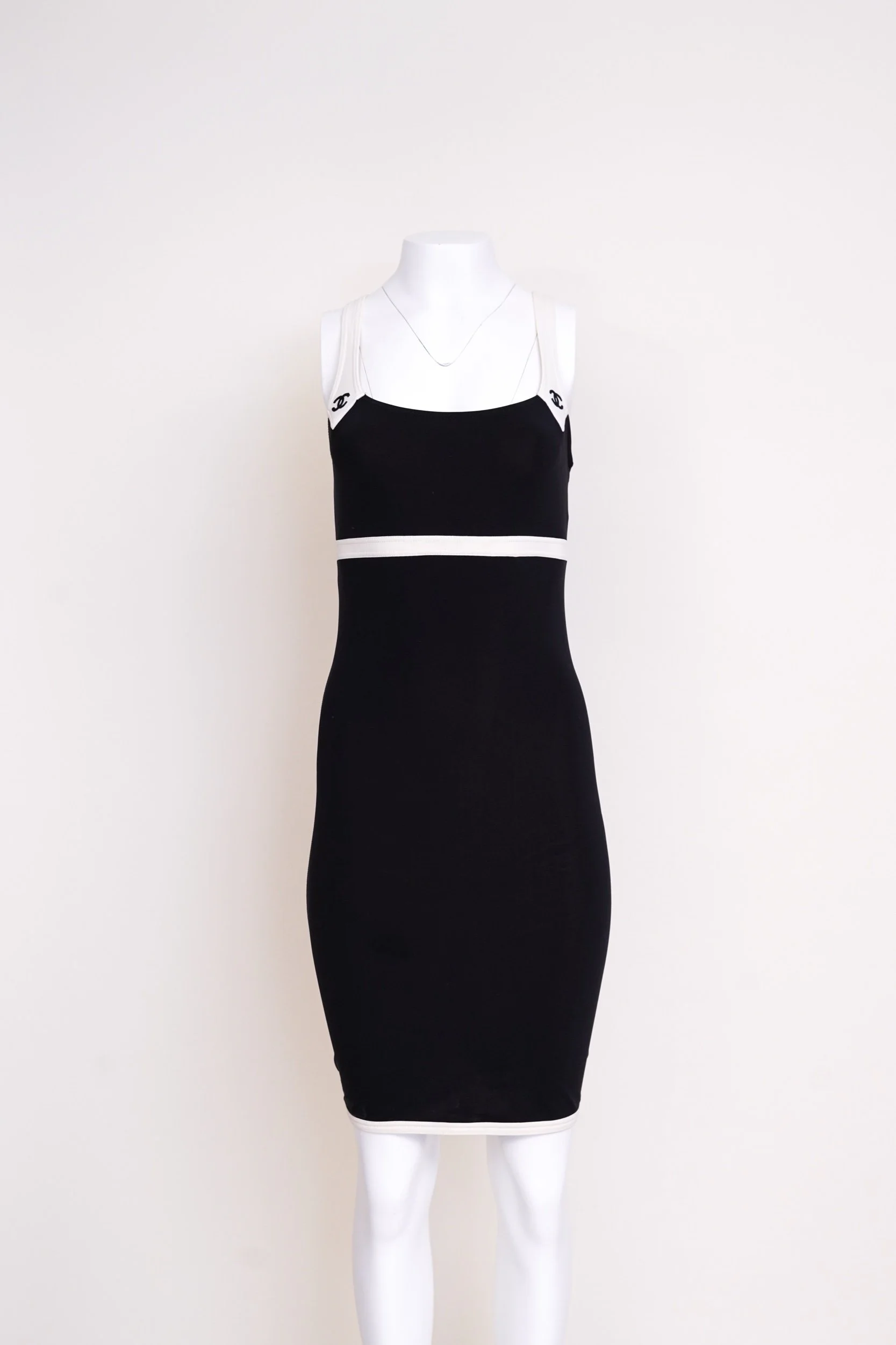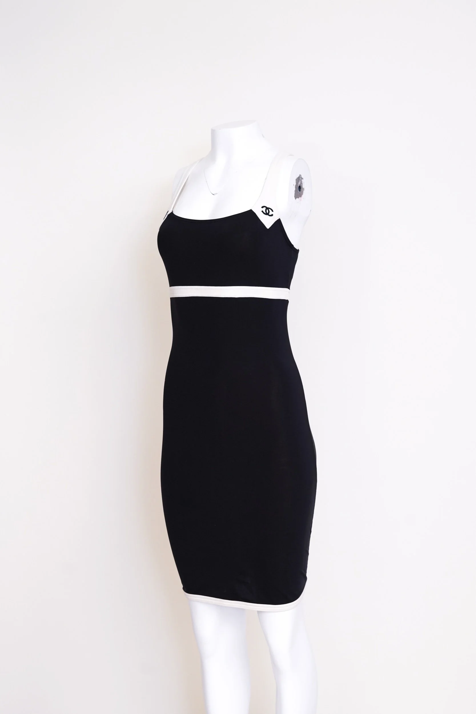 Chanel 1996 Black & White Logo Trim Midi Dress – Size 40