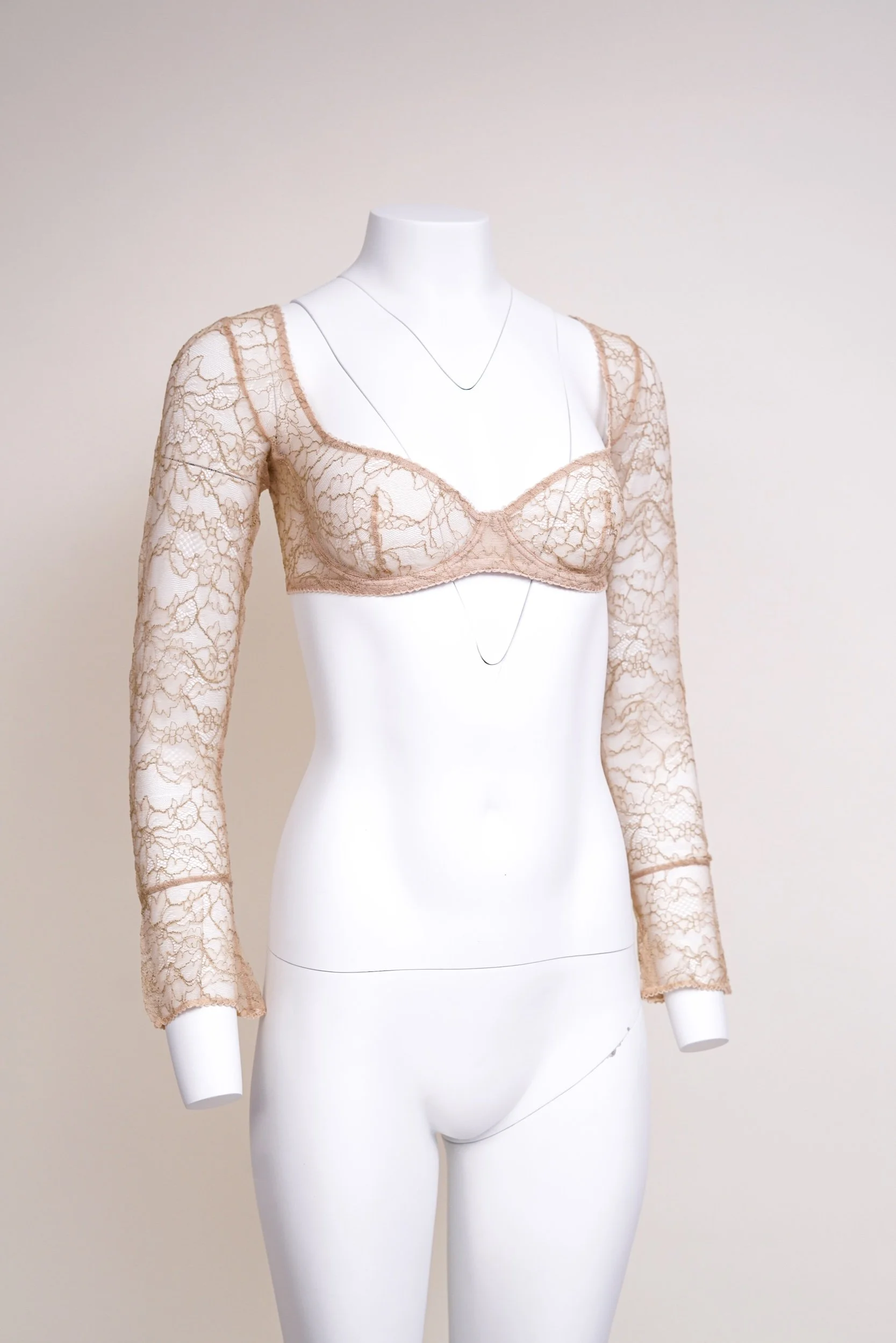 Chanel 2005 Nude Lace Long Sleeve Bra Top