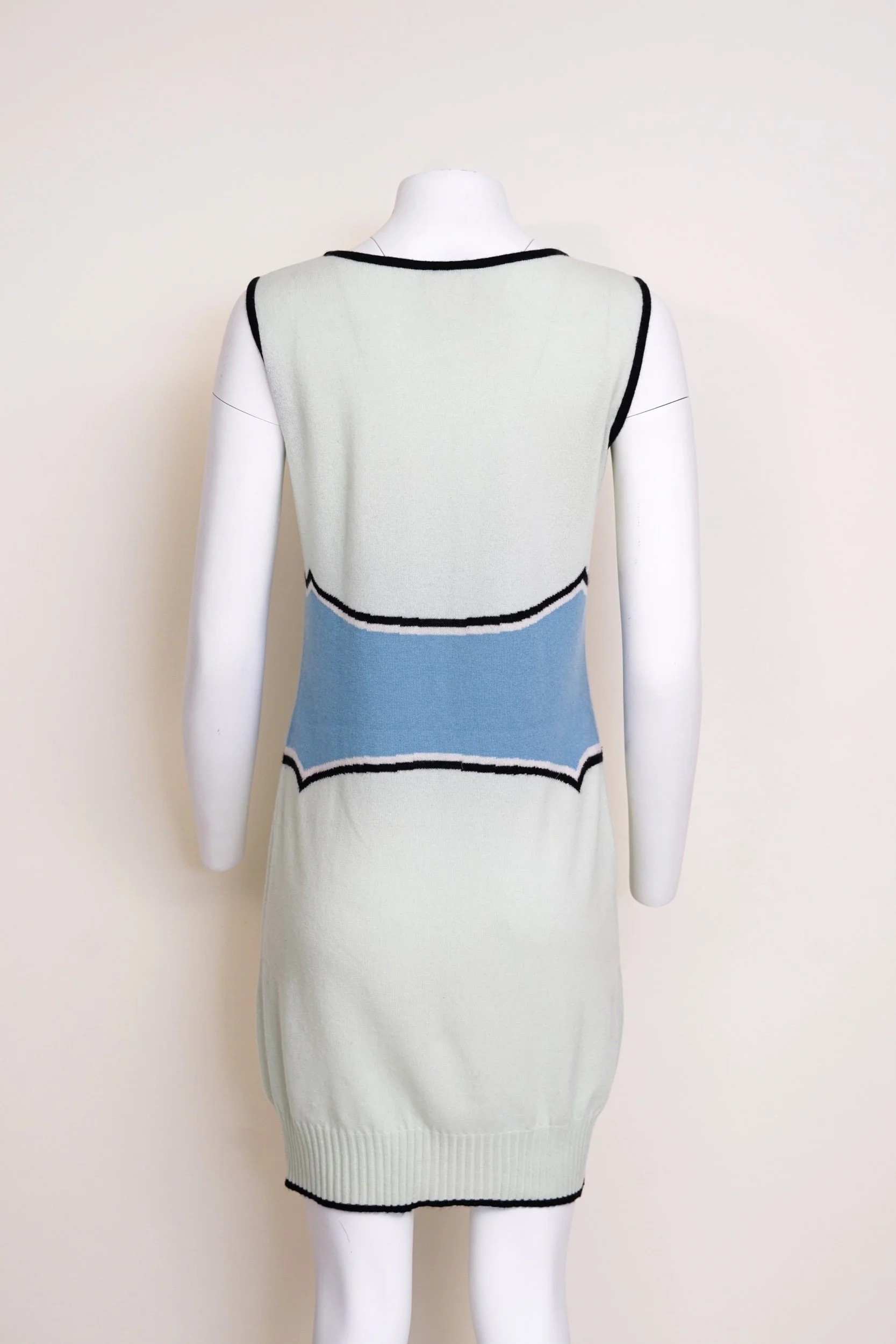 Chanel Cruise 2009 Mint Green & Blue Logo Cashmere Mini Dress – Size 40