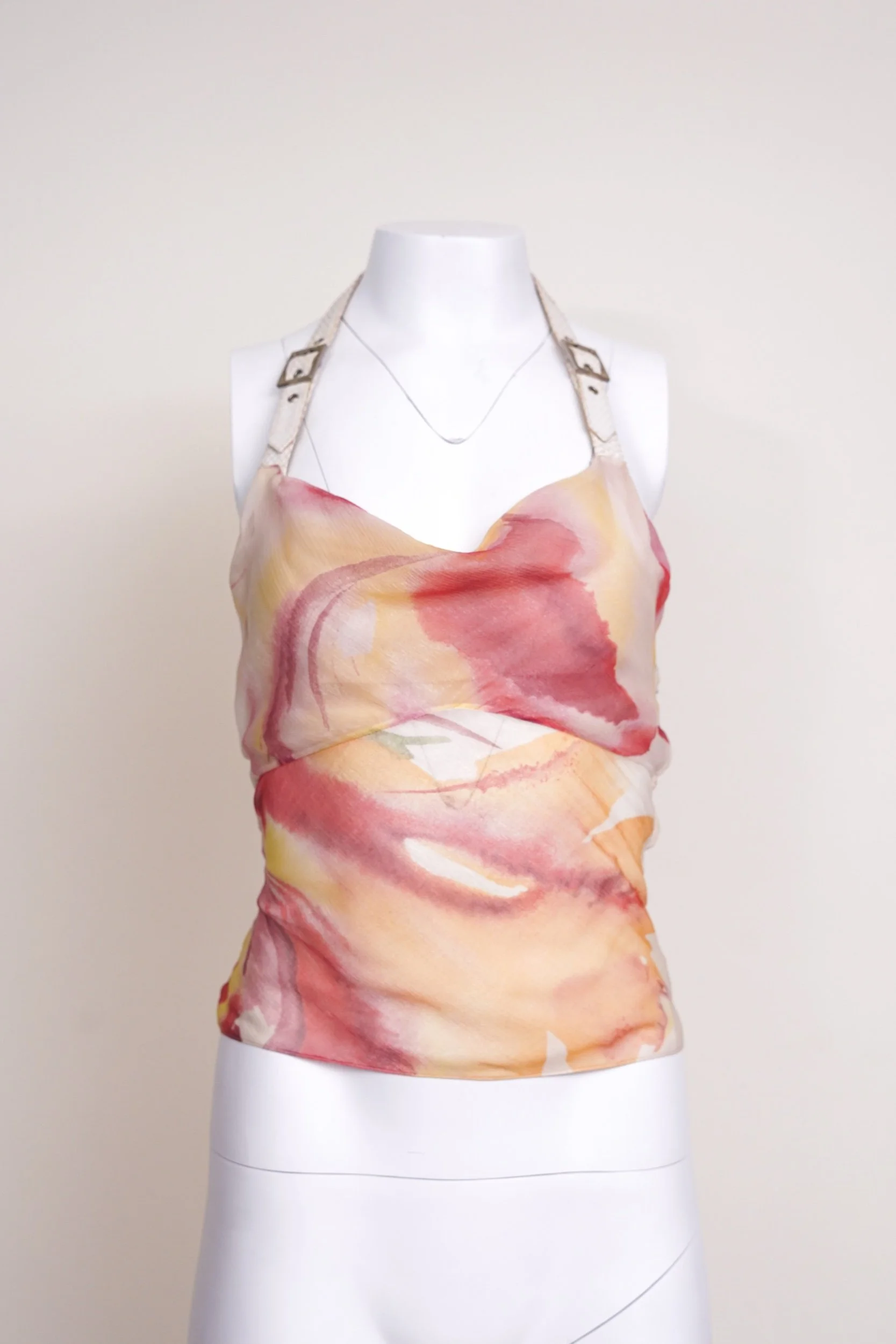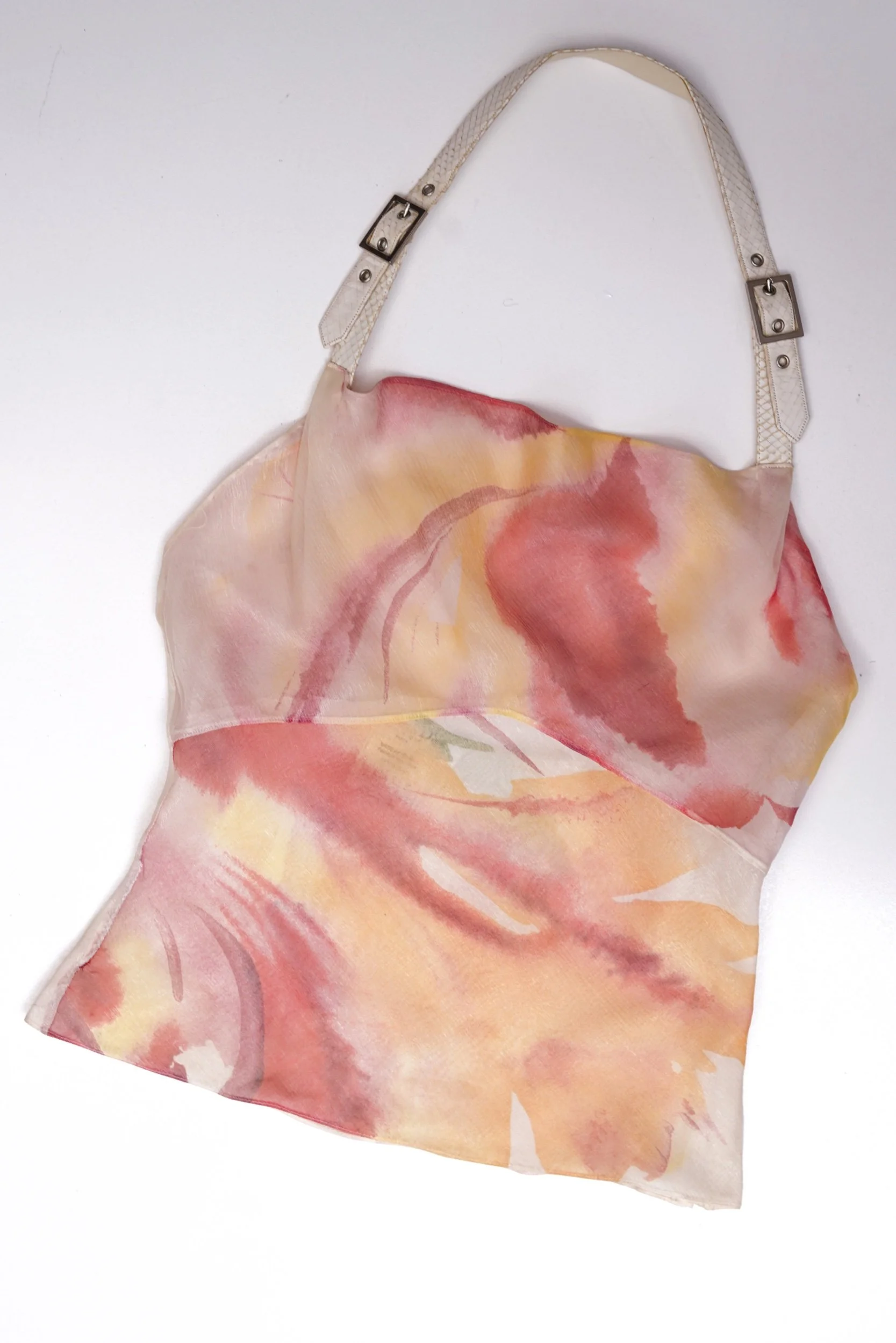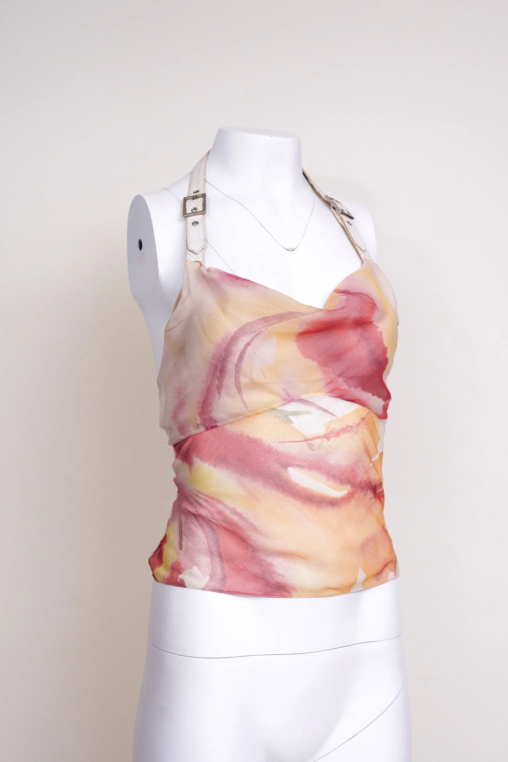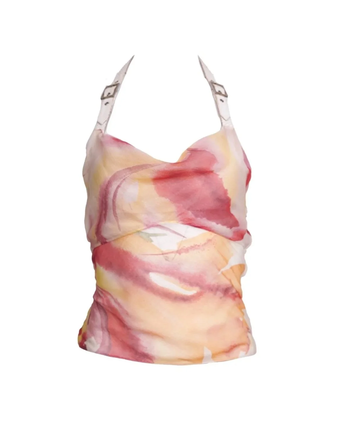 Christian Dior S/S 2001 Pink & White Tie-Dye Silk Halter Top
