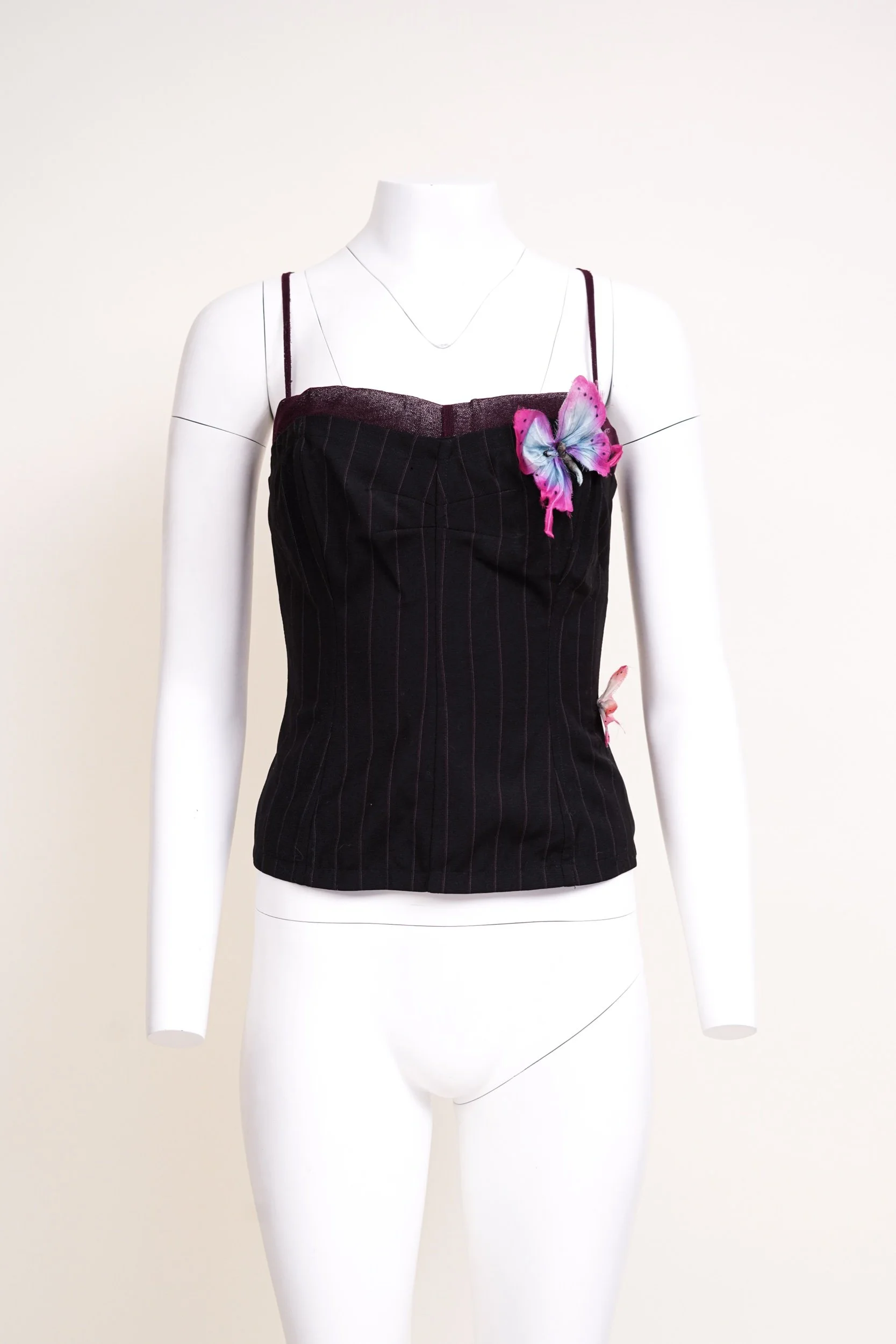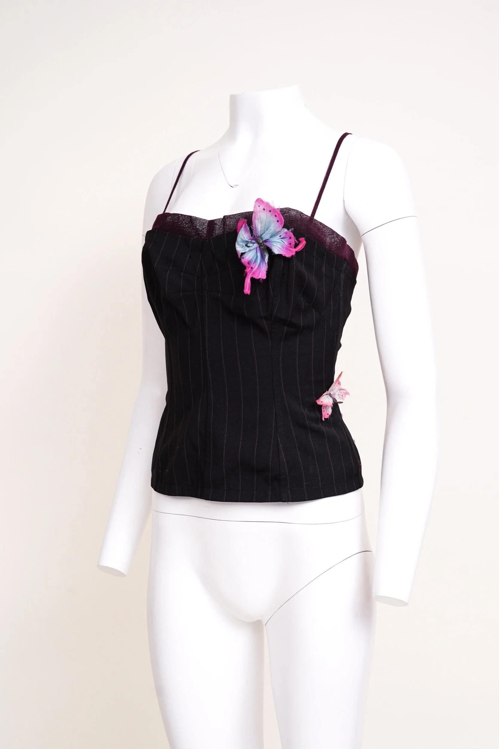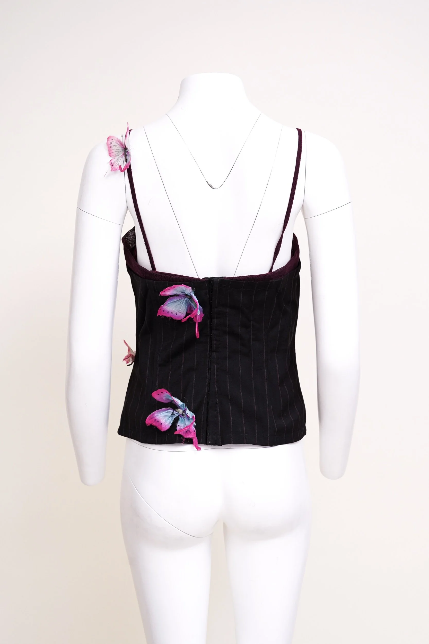 Dolce & Gabbana 1998 Pinstripe Corset Top with Butterfly Appliqué