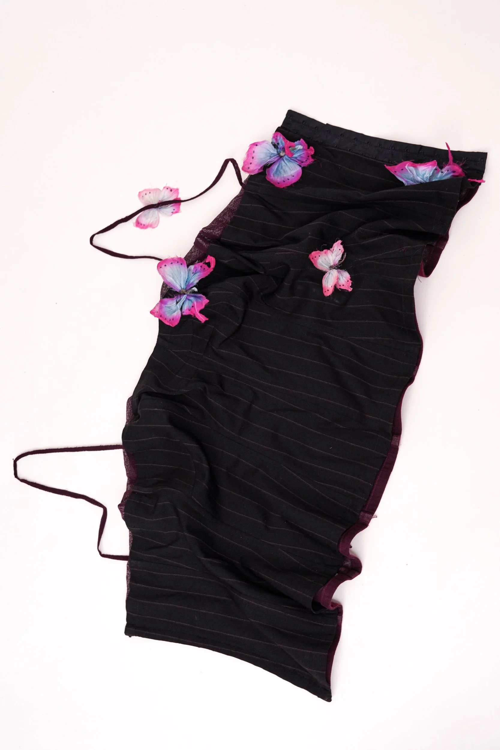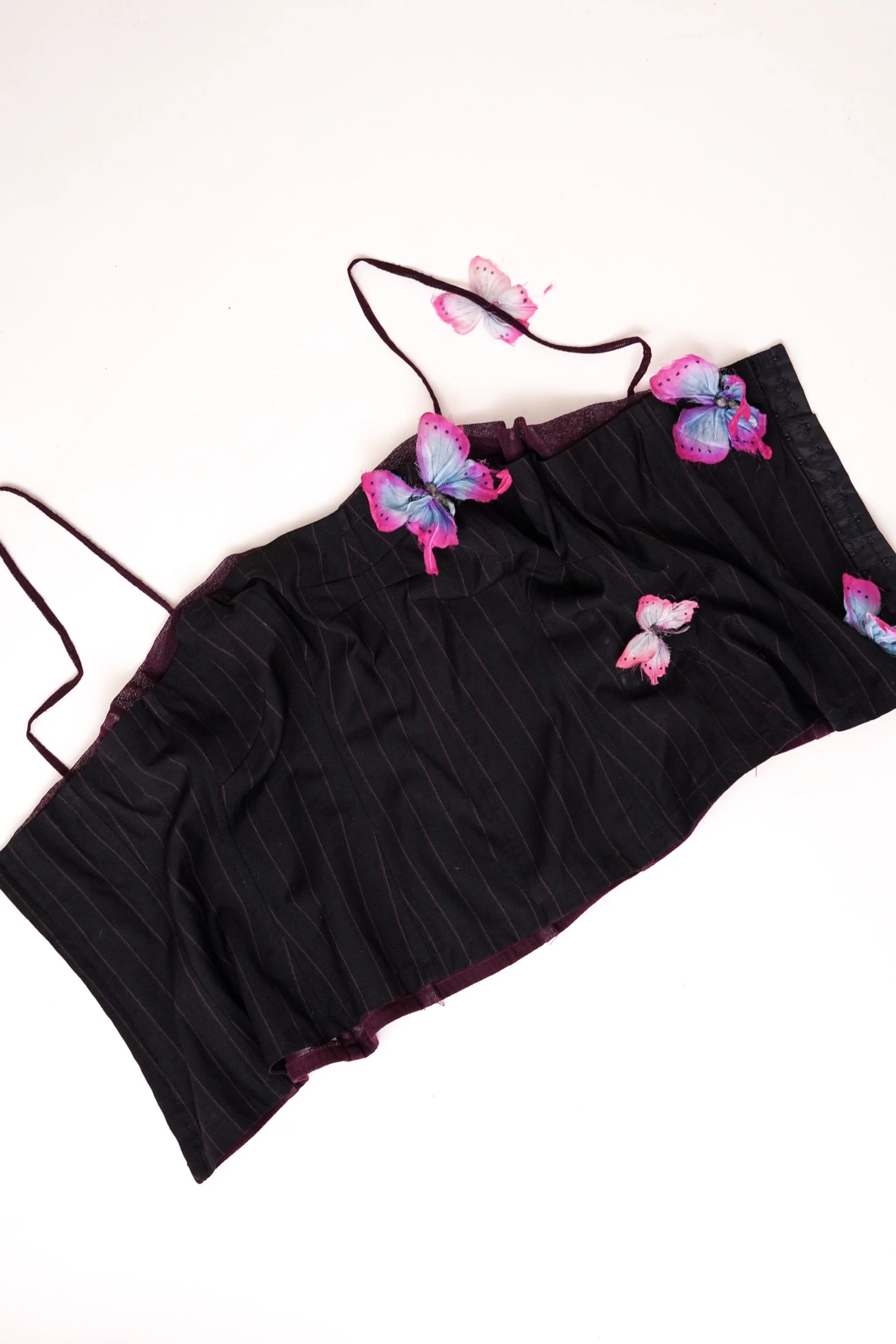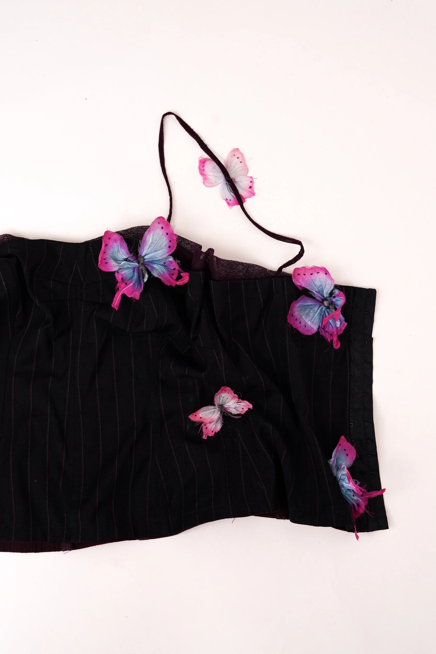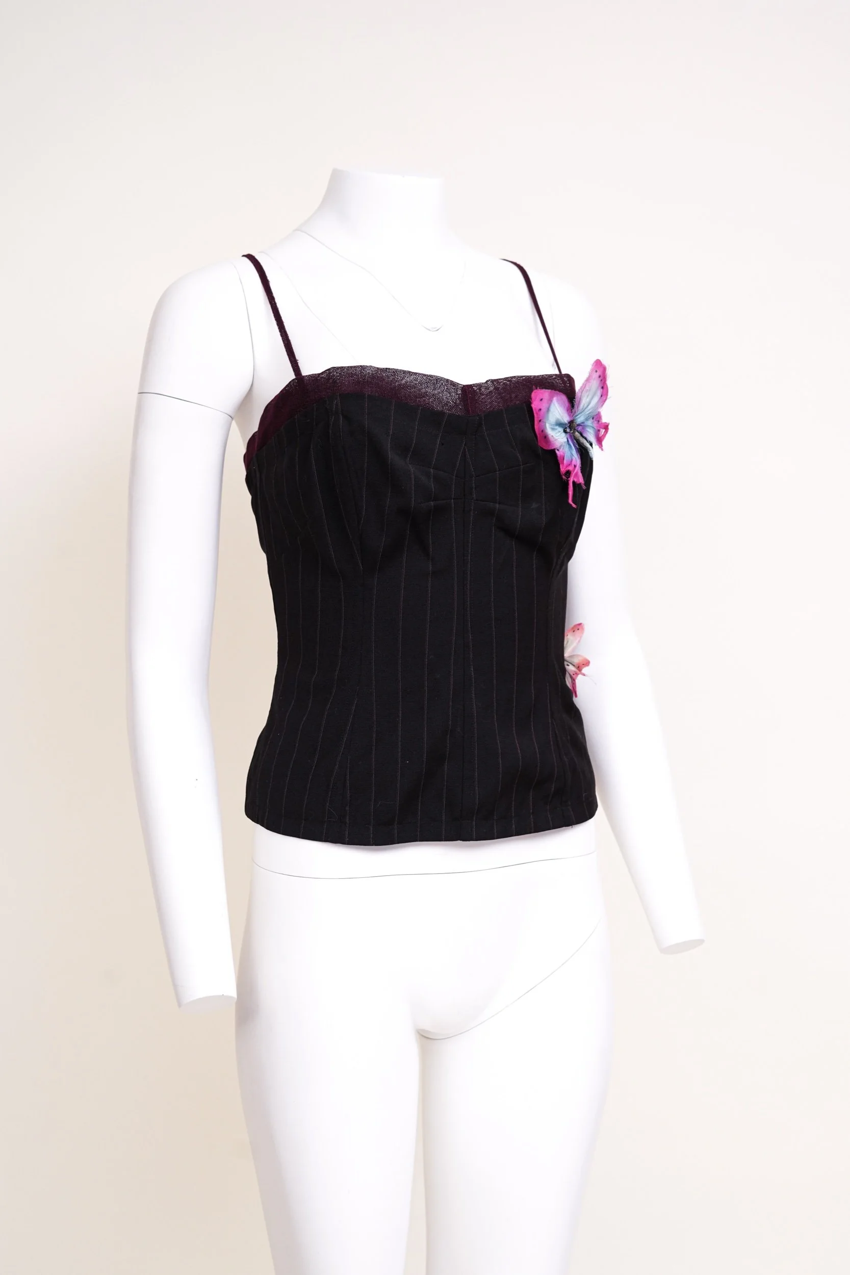 Dolce & Gabbana 1998 Pinstripe Corset Top with Butterfly Appliqué
