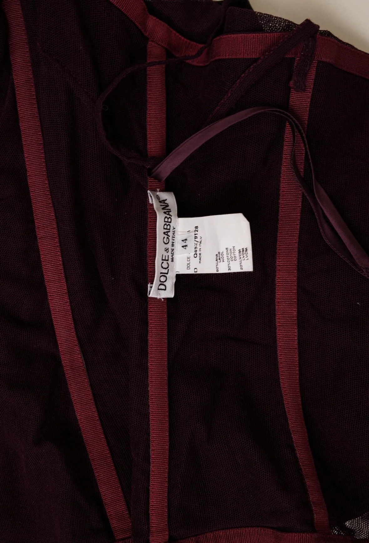 A distinctive piece from Dolce & Gabbana’s late-1990s era, this pinstripe corset top captures the brand’s signature fusion of tailoring and romantic, feminine detailing. Crafted in a dark pinstriped fabric, the structured bodice is complemented by delicate spaghetti straps and a subtle sheen along the neckline. Playful butterfly appliqués add a whimsical, unexpected touch, contrasting beautifully with the sharp, tailored silhouette. Both elegant and expressive, this piece reflects Dolce & Gabbana’s iconic approach to sensual, statement-making design.