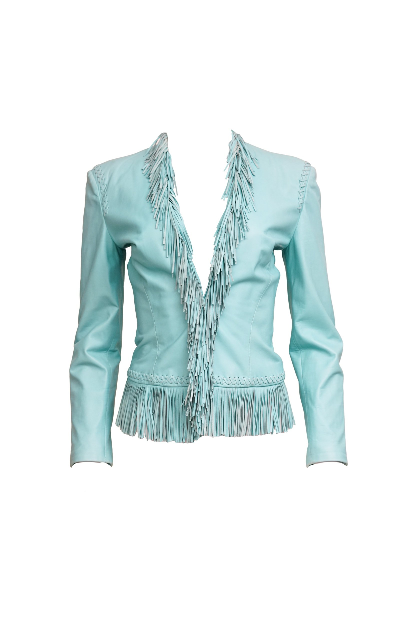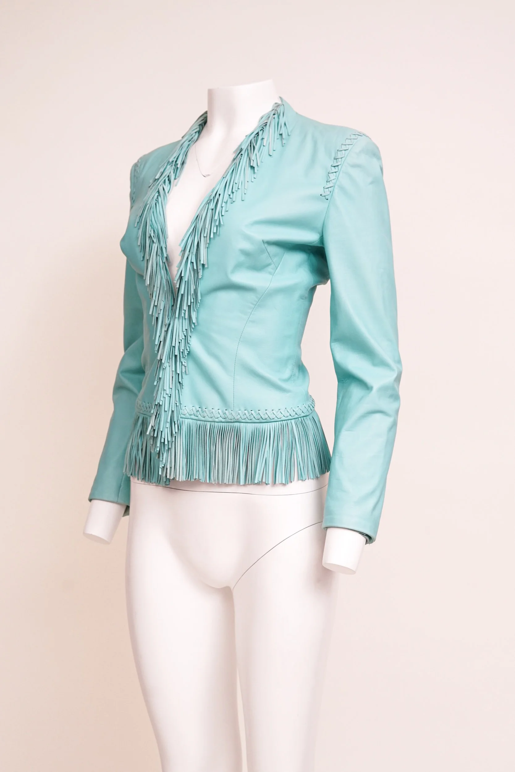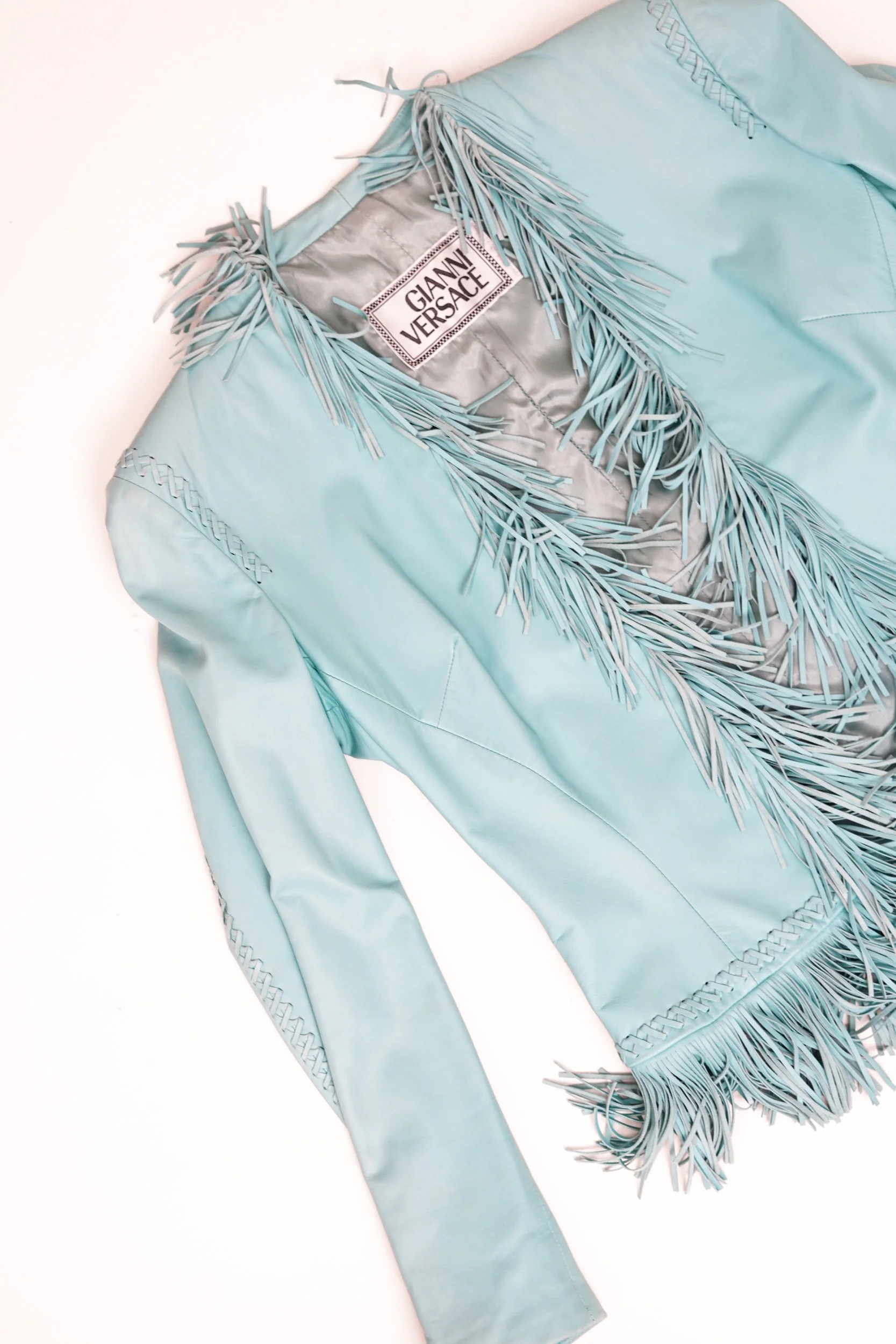 Versace Spring/Summer 2002 Blue Leather Fringe Jacket