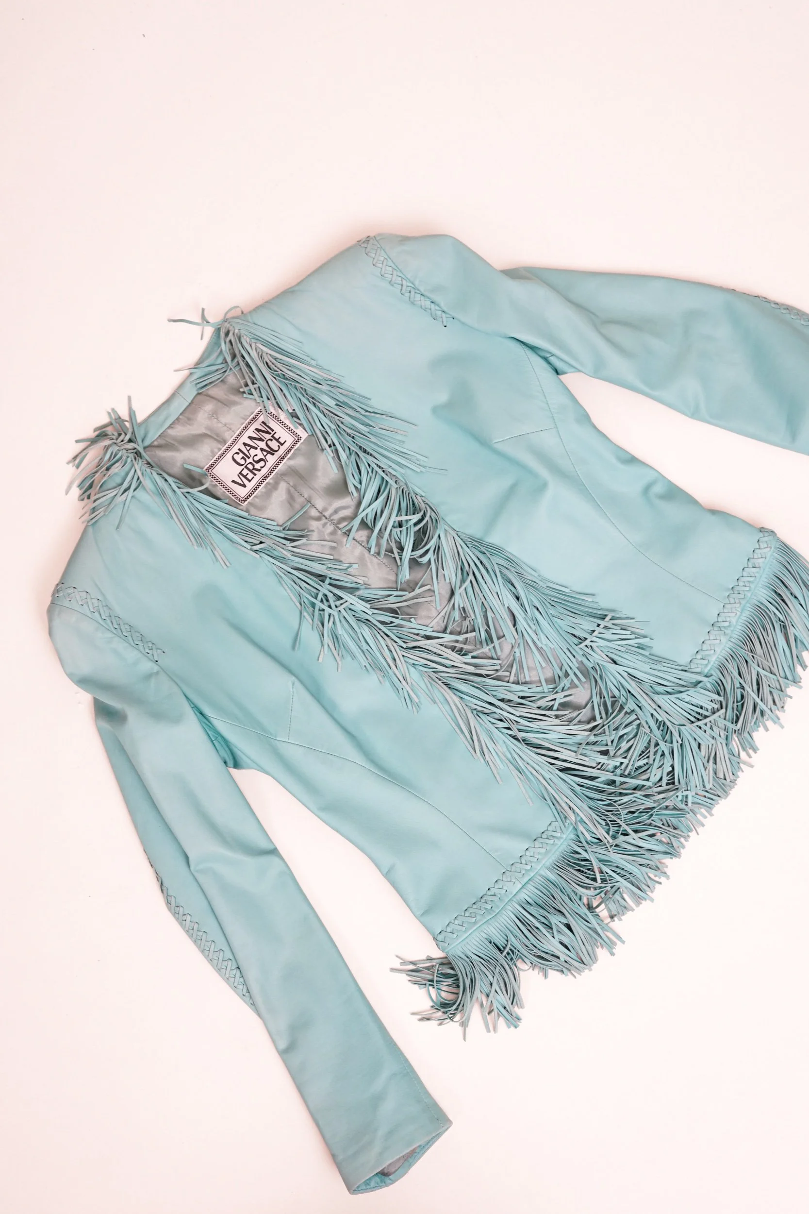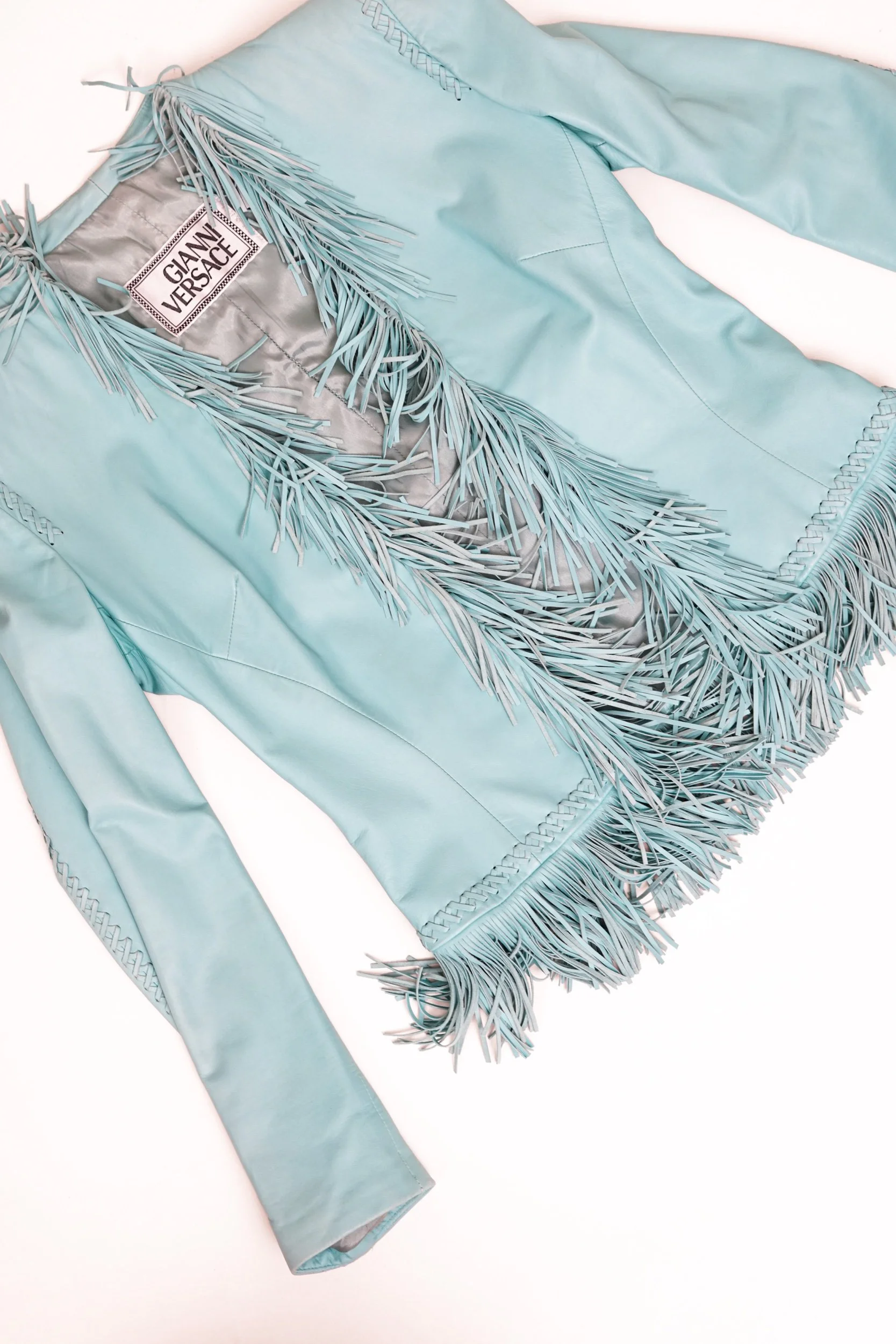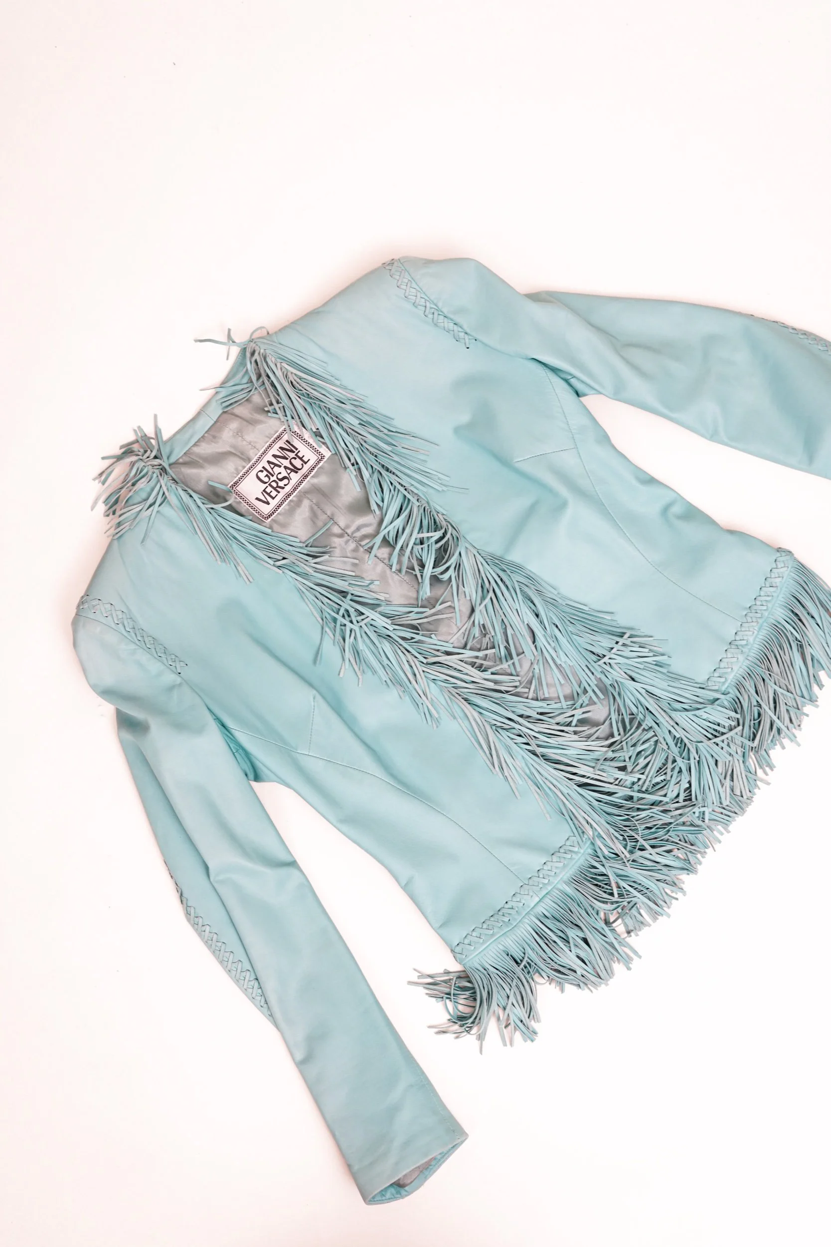 Versace Spring/Summer 2002 Blue Leather Fringe Jacket