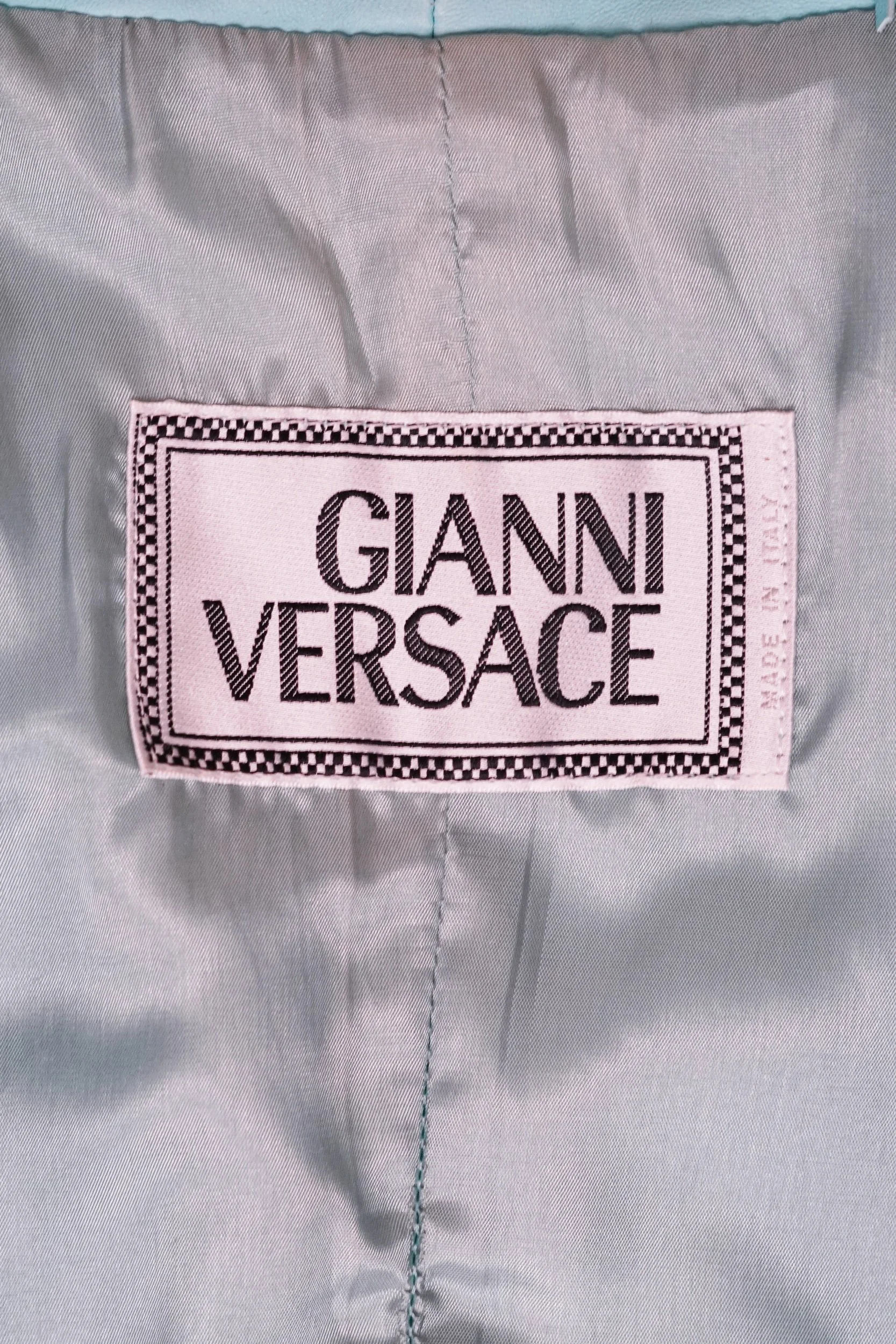A rare and collectible S/S 2002 Versace leather jacket, blending early-2000s drama with timeless Italian craftsmanship—a standout piece for collectors and true fashion enthusiasts.