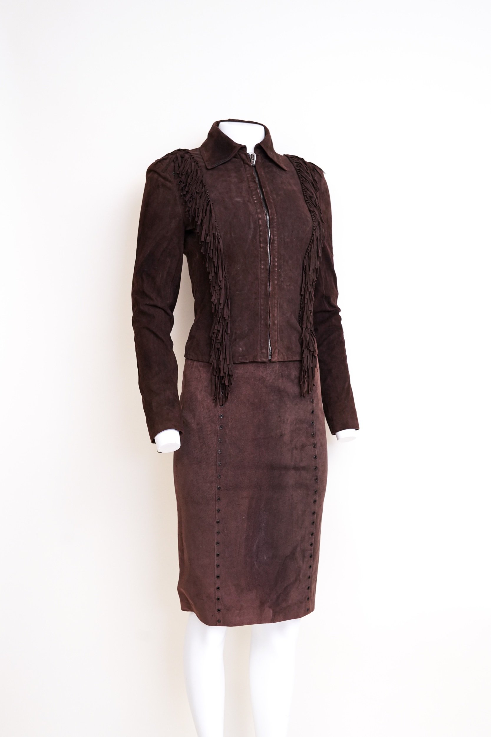 Gianni Versace Suede Fringe Jacket & Skirt Set – Brown – With Original Tags