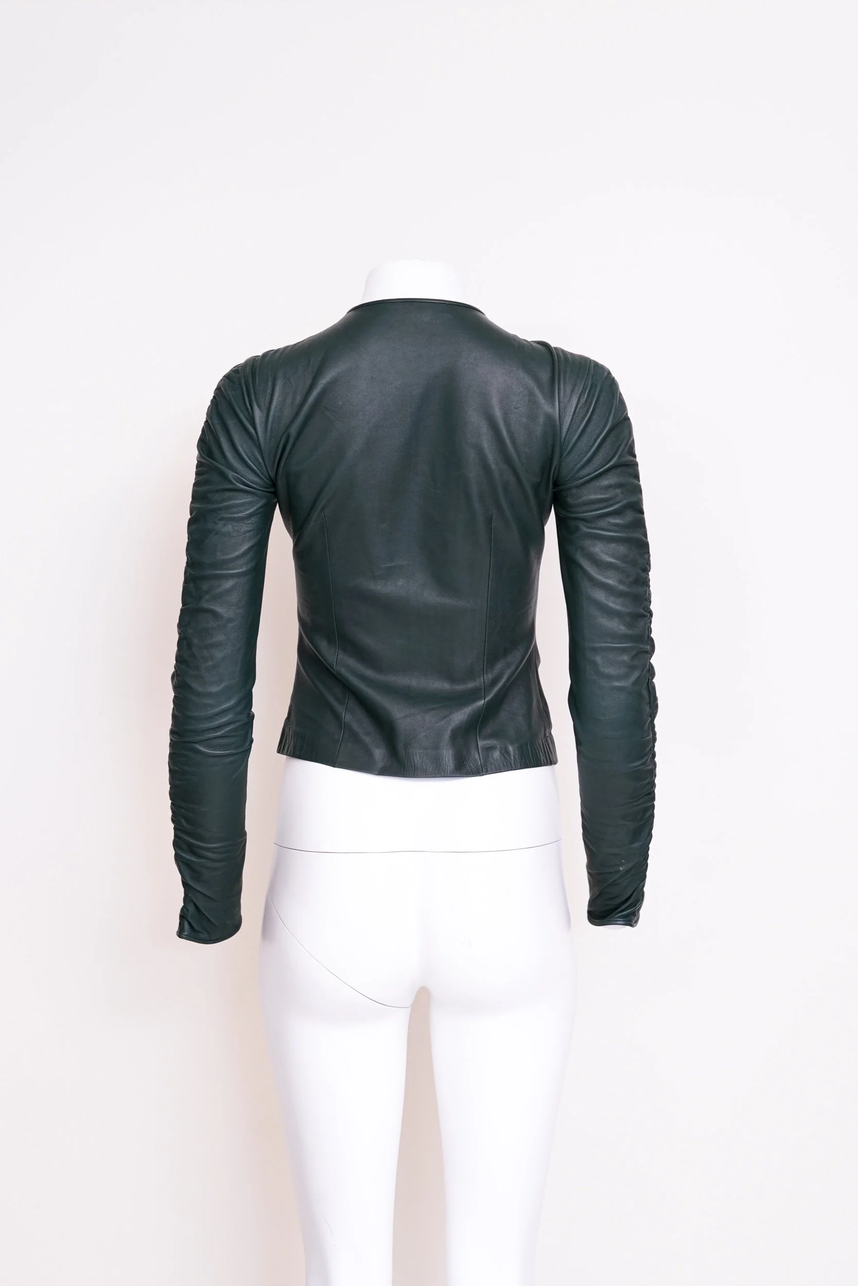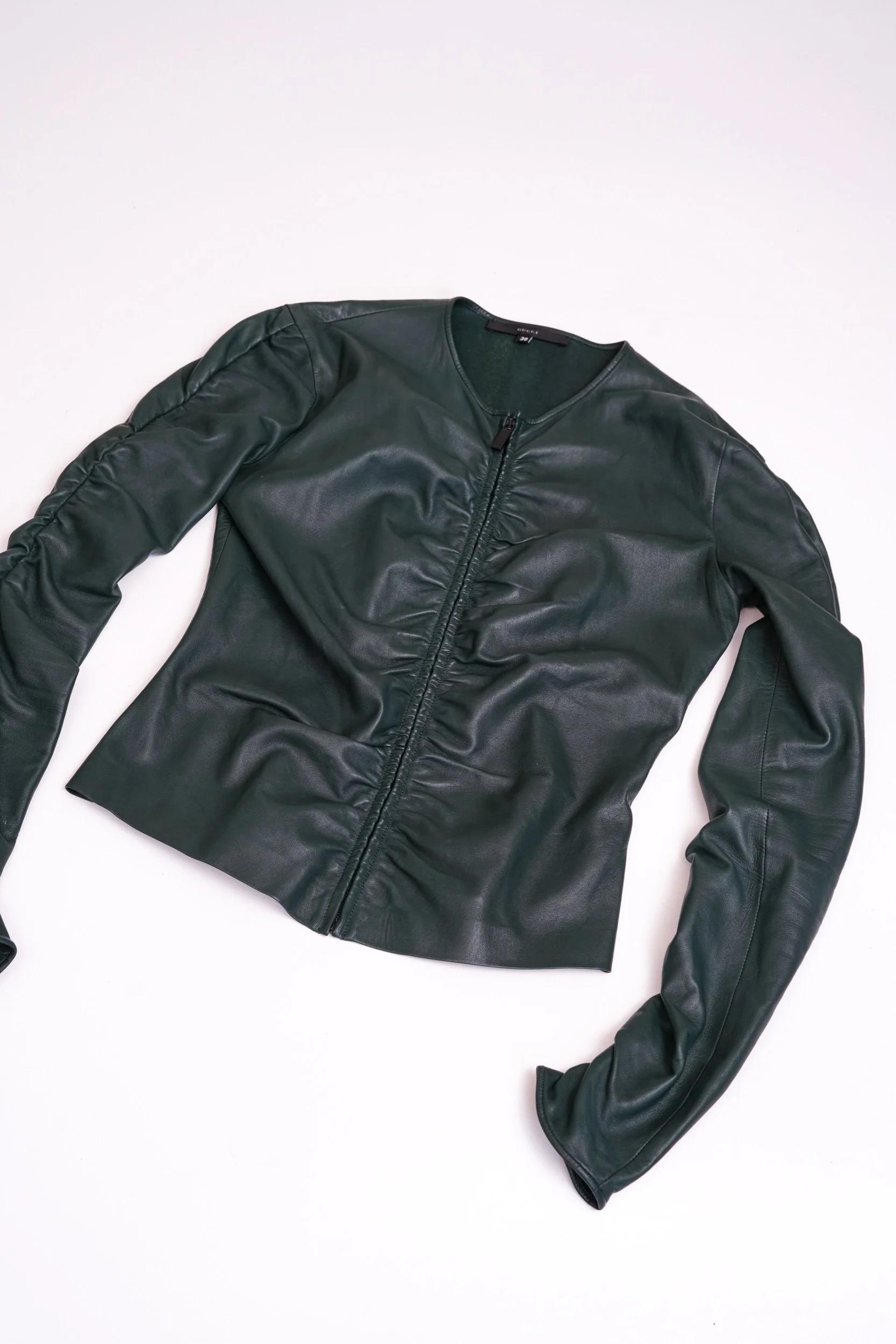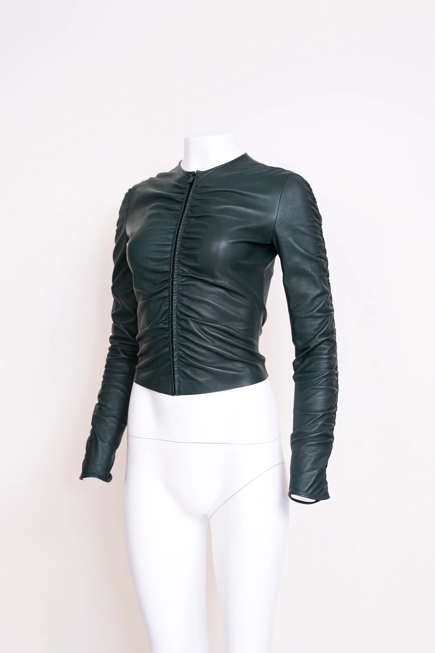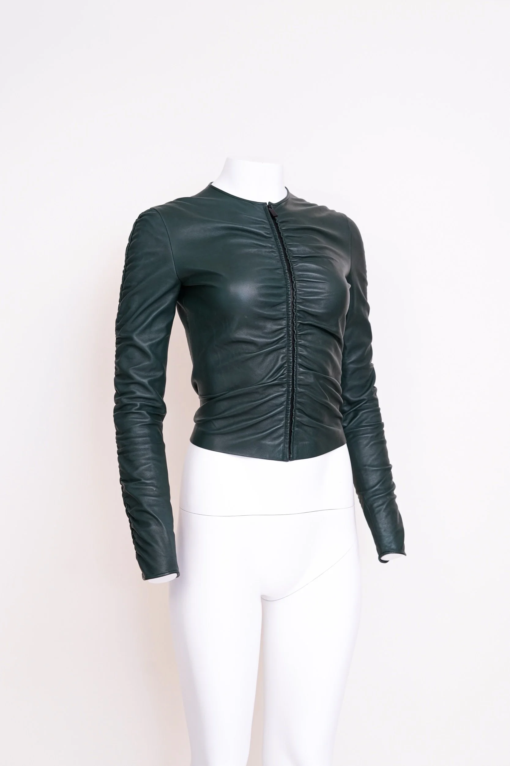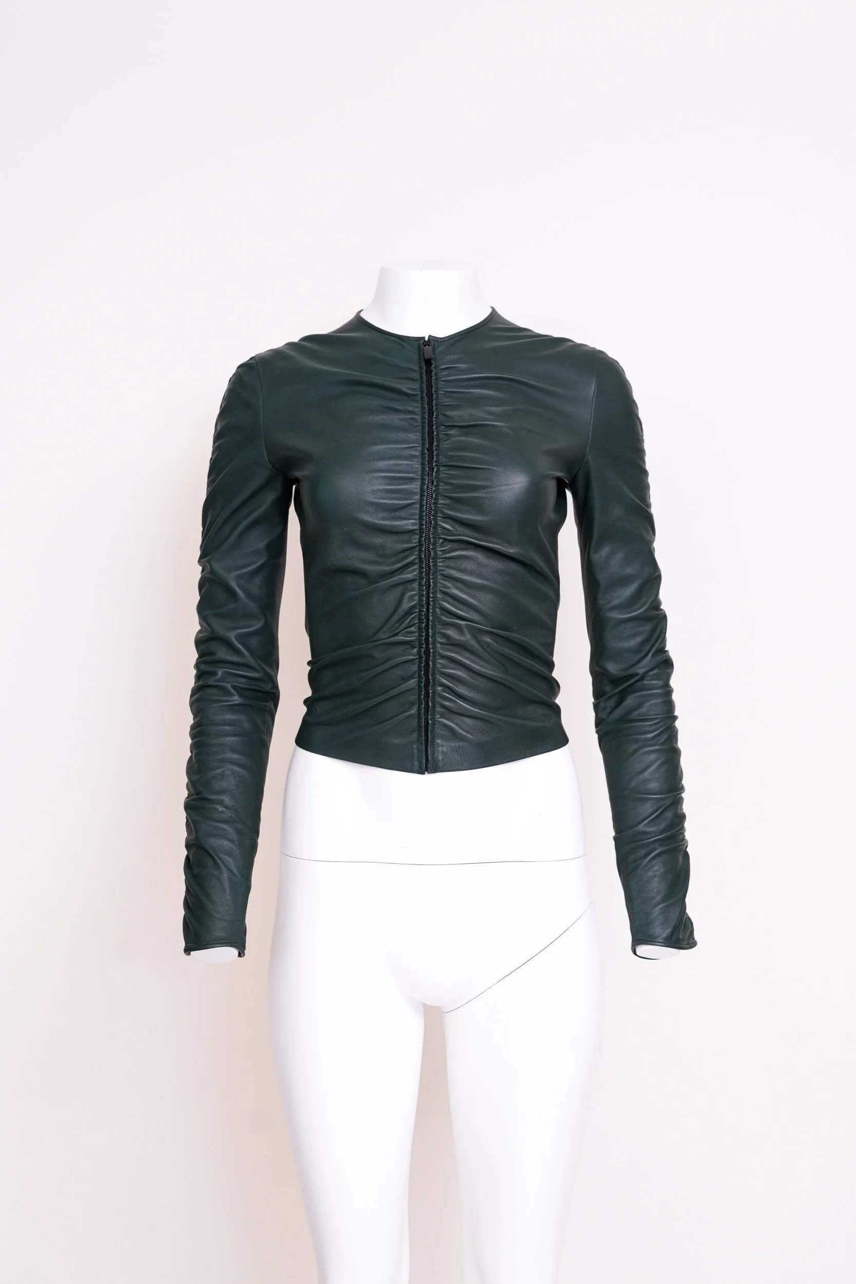 Gucci 1999 Green Ruched Leather Jacket – Size 38