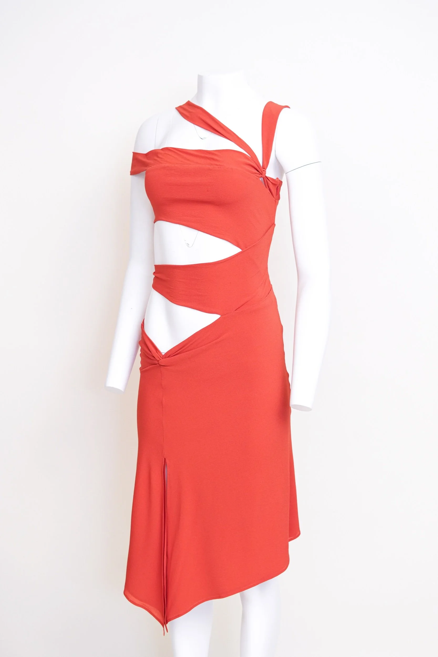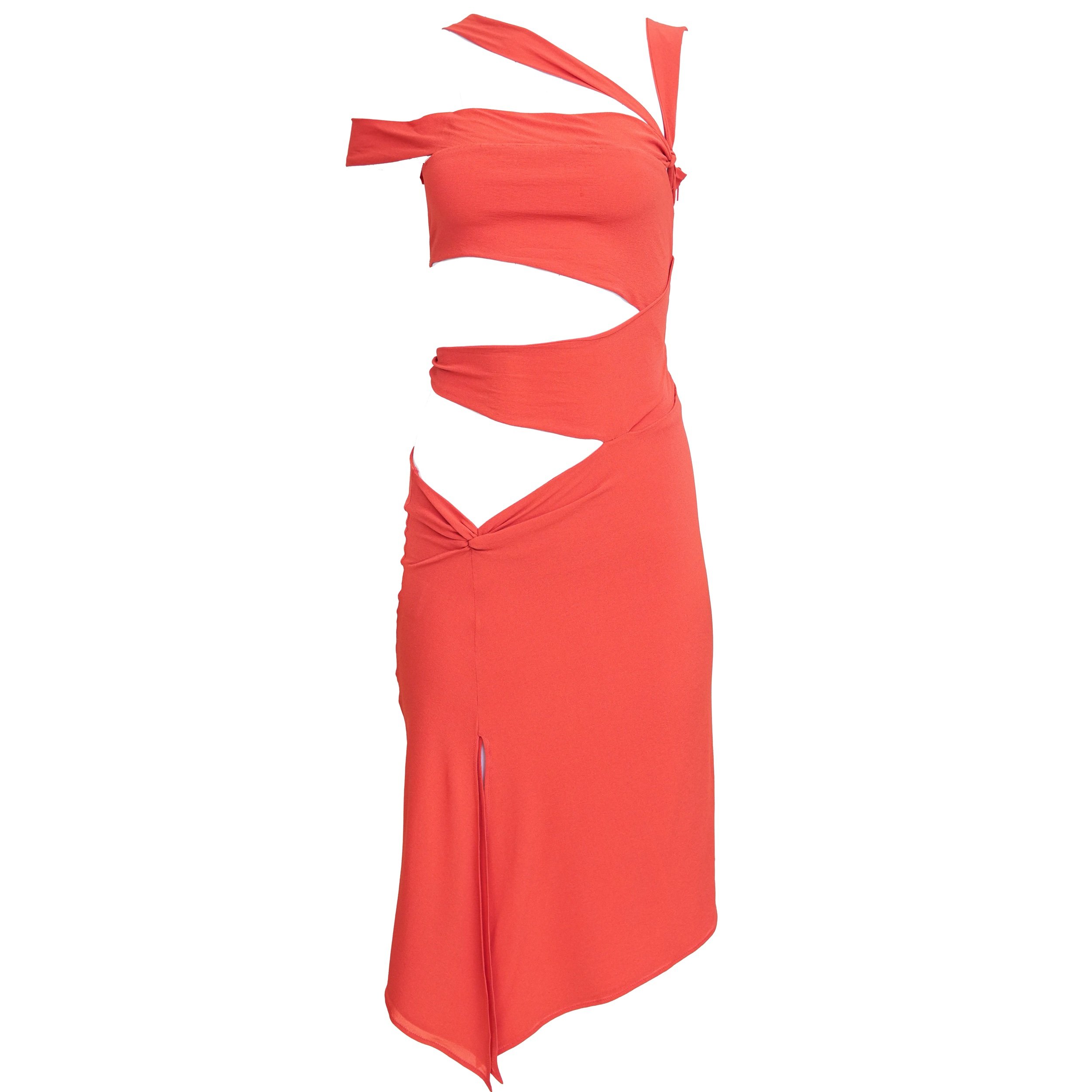 Gucci Fall/Winter 2003 Red Cutout Asymmetrical Silk Dress – Size 42