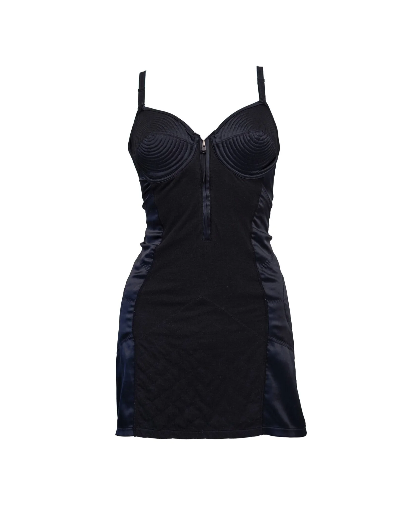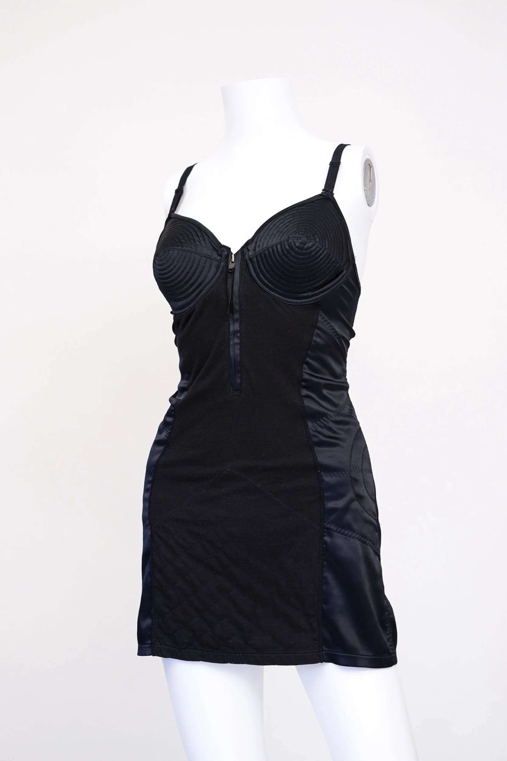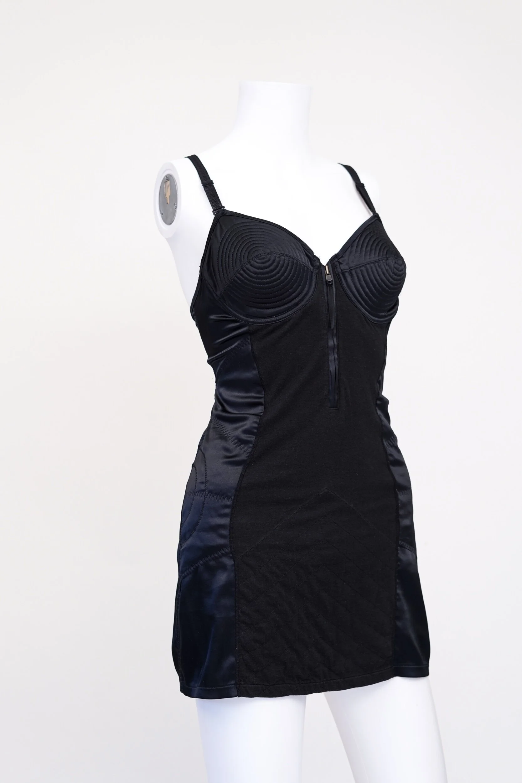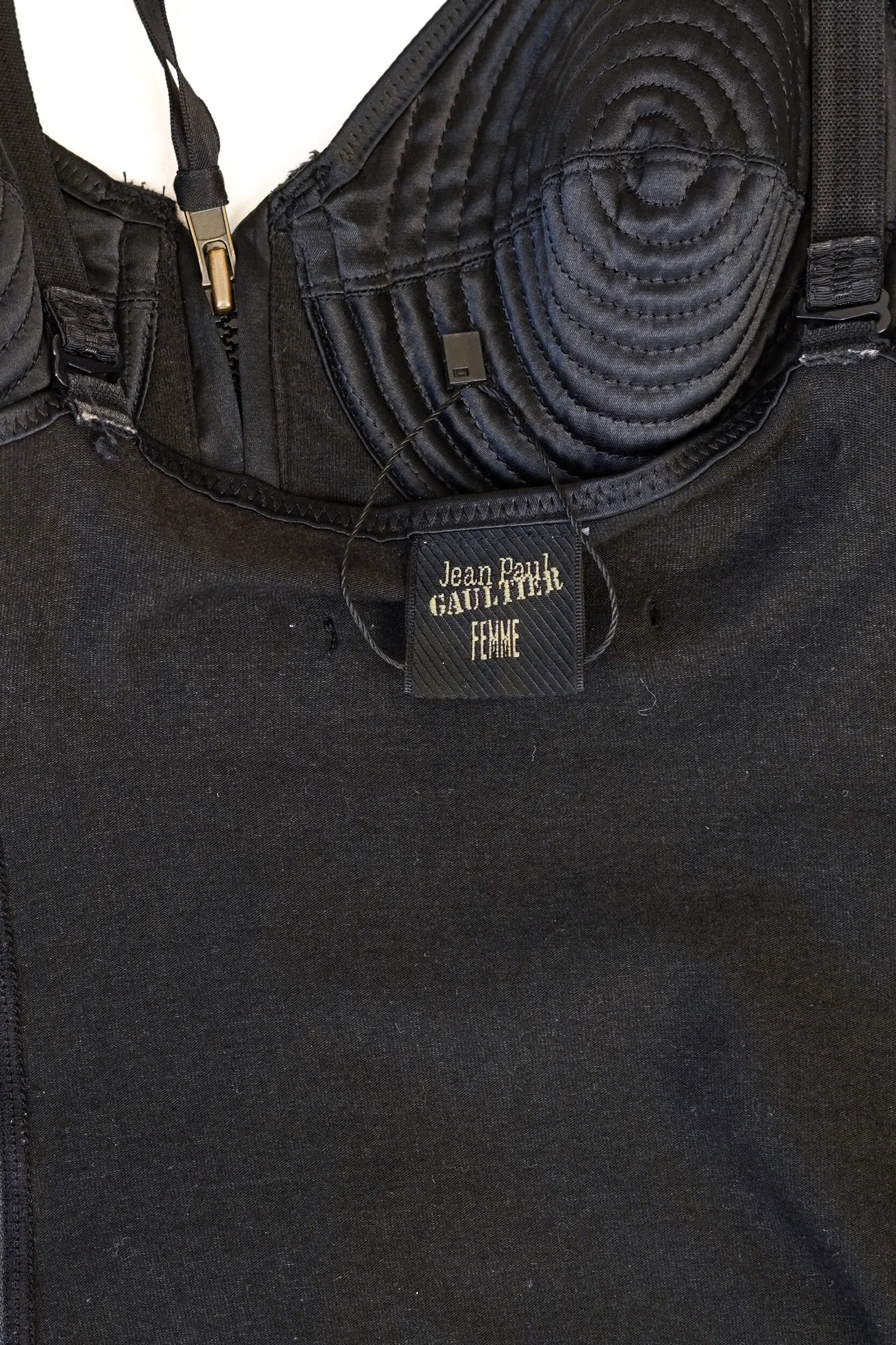 Jean Paul Gaultier 1990's Vintage Cone Bra Corset Bondage Black Mini Dress