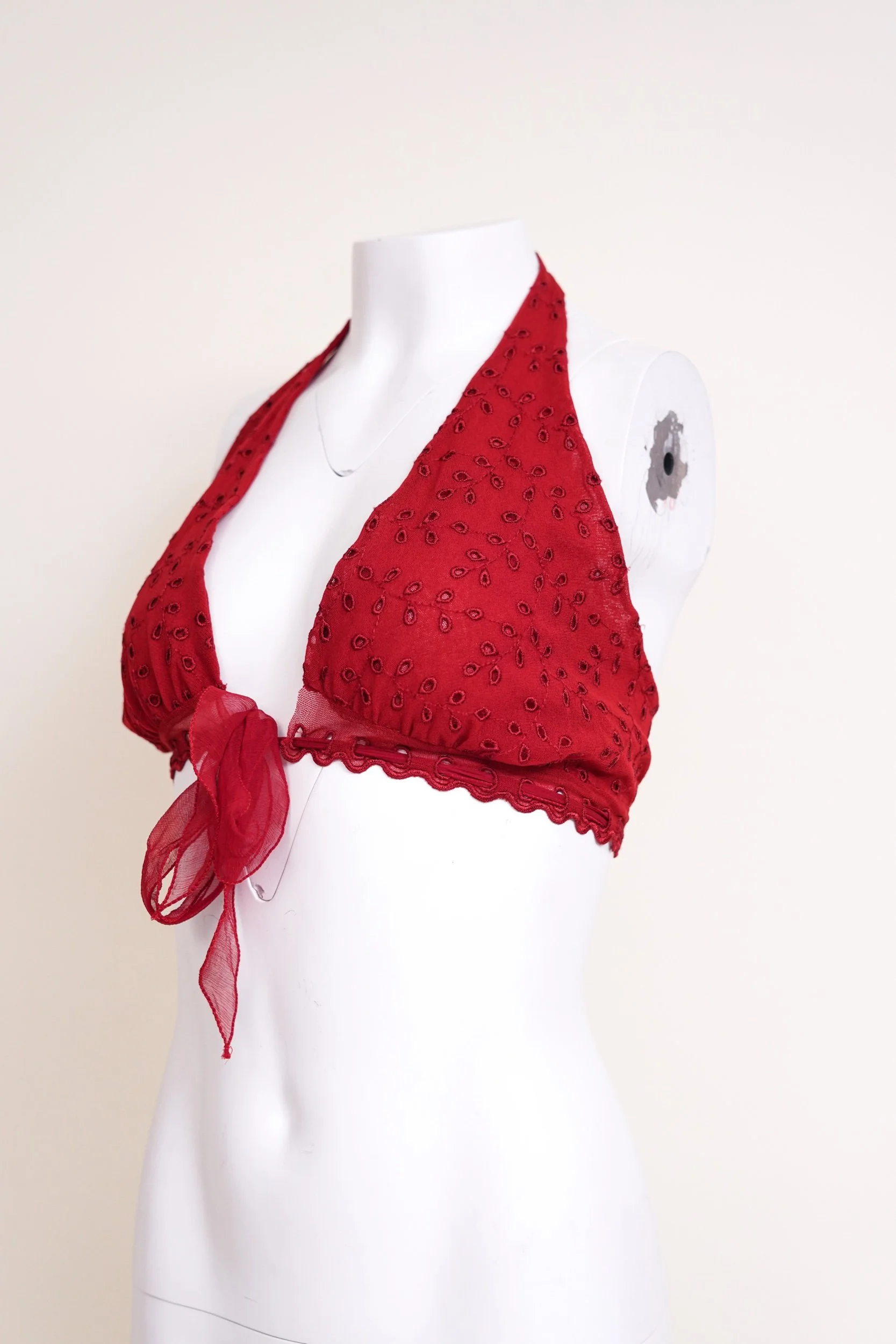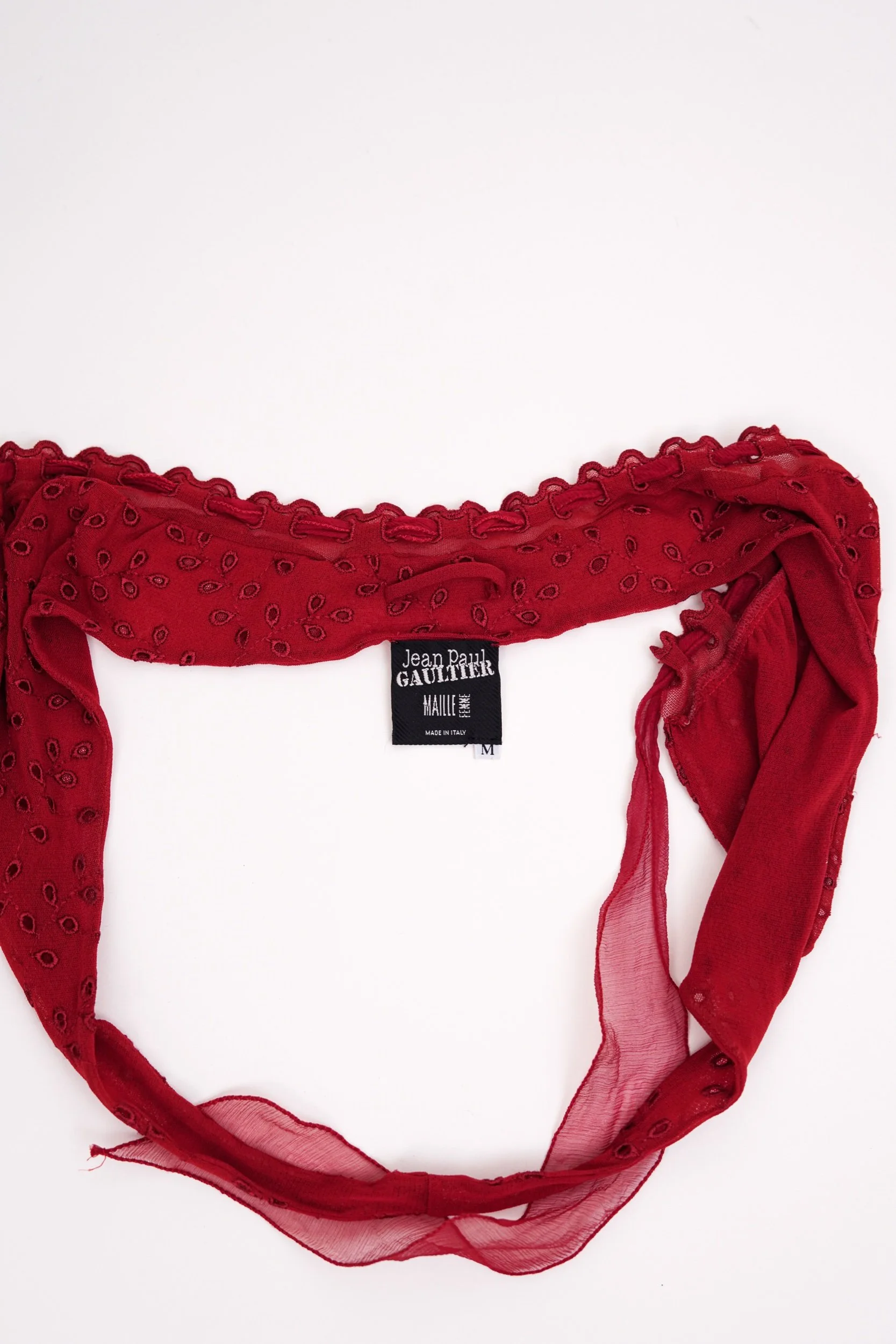 Jean Paul Gaultier 2006 Red Eyelet Crop Top – Size M