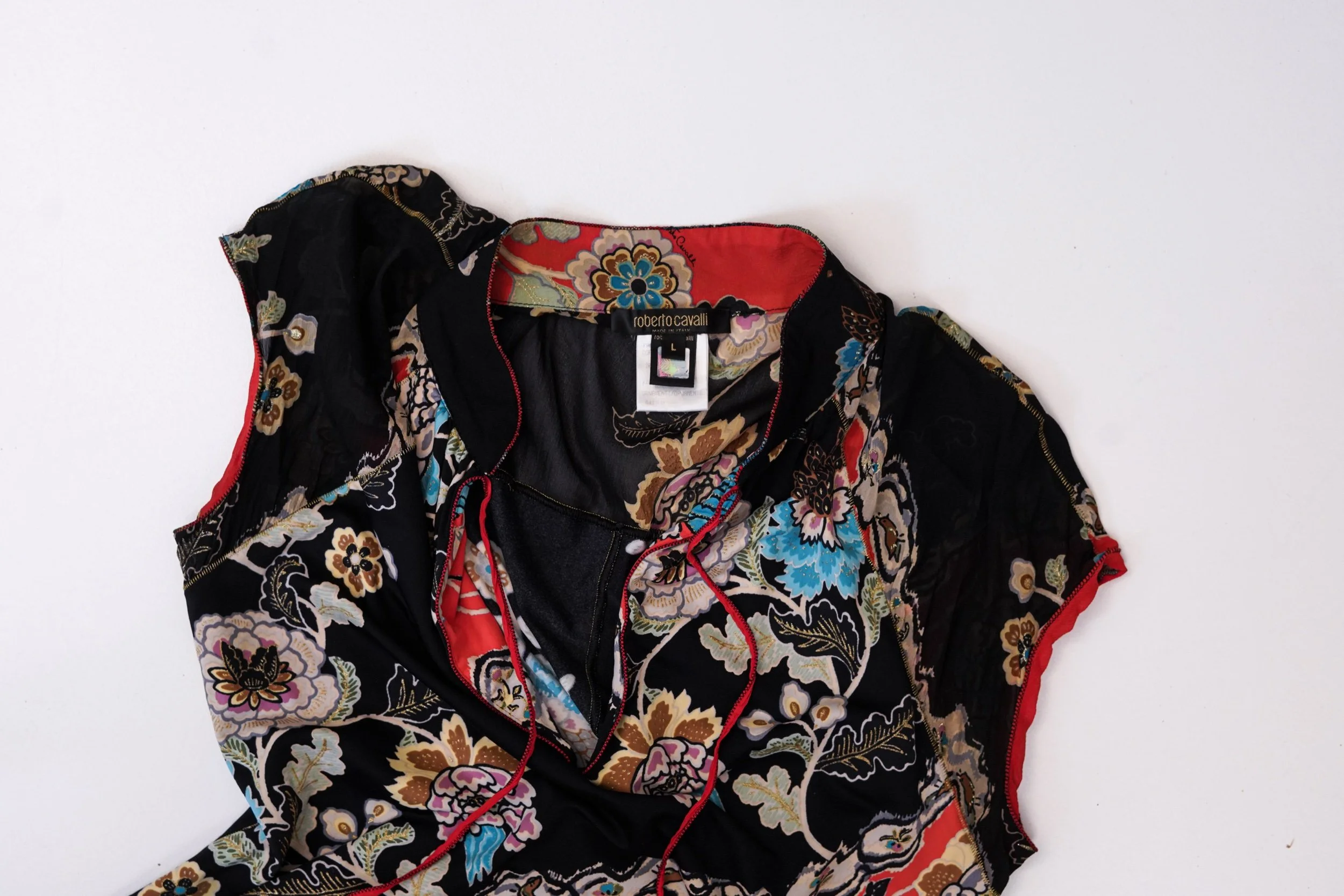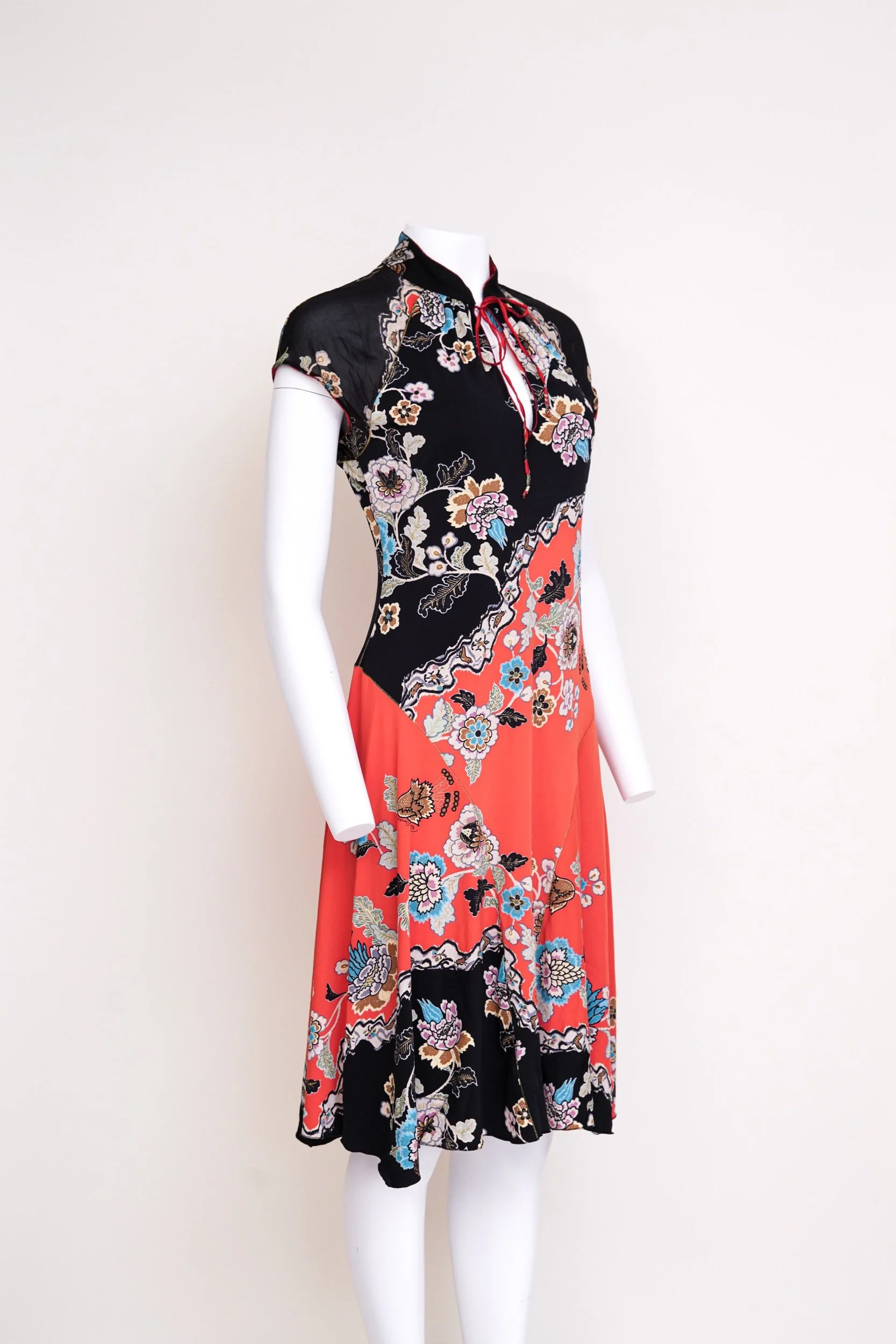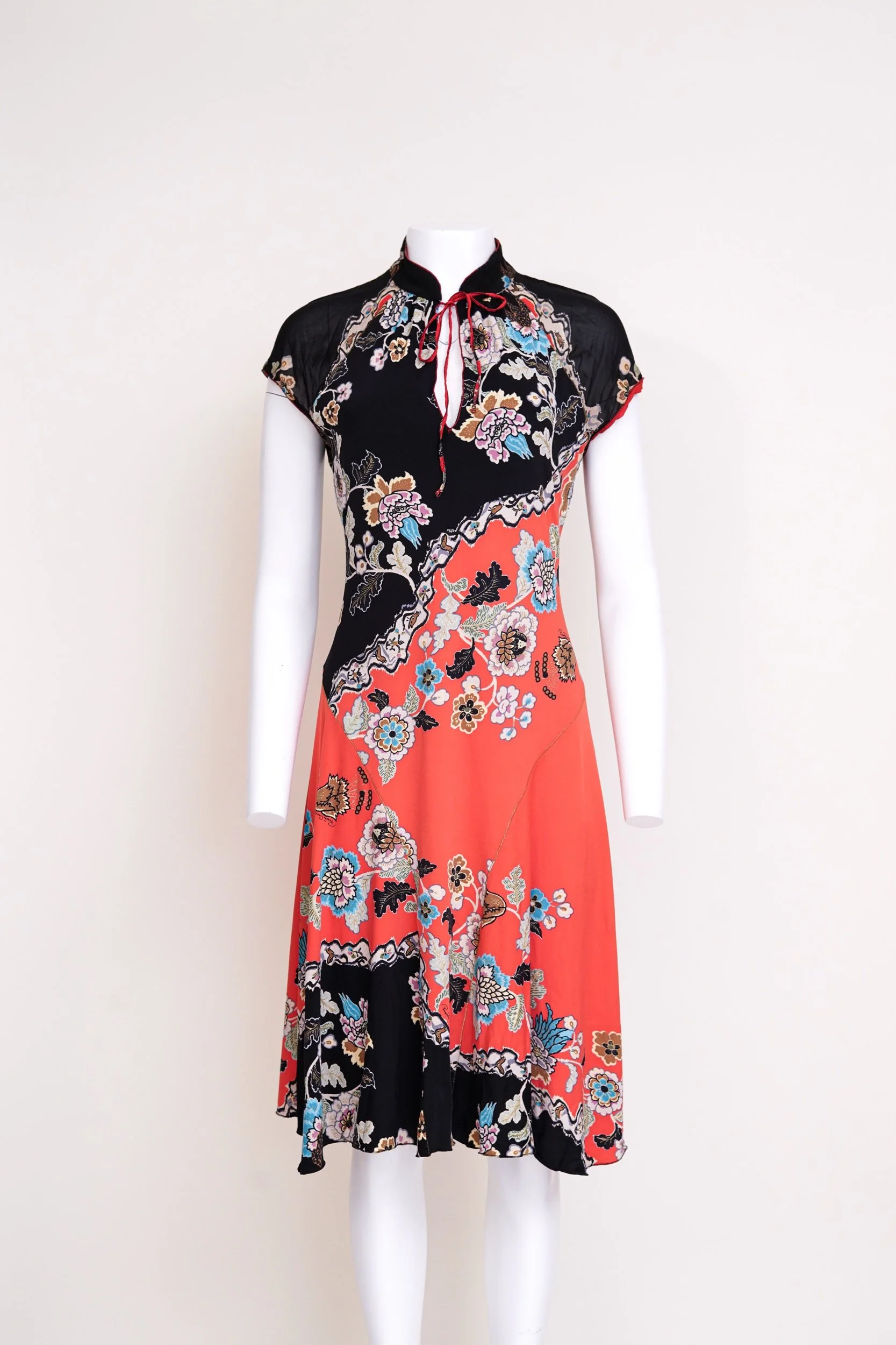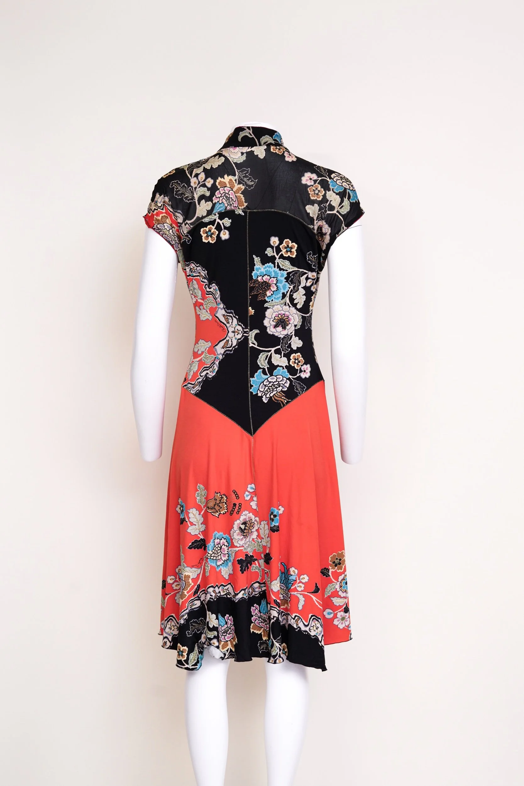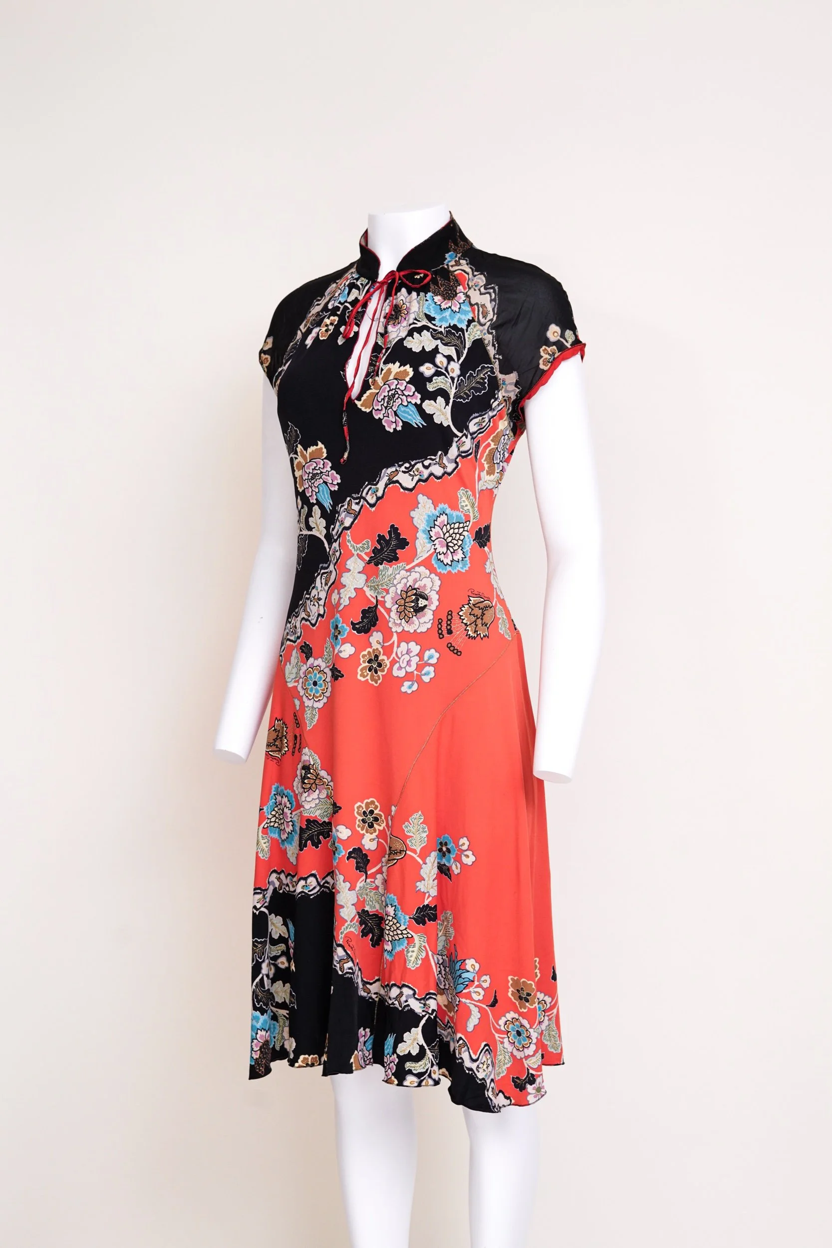 Roberto Cavalli 2003 Red Chinoiserie Floral Dress – Size Large