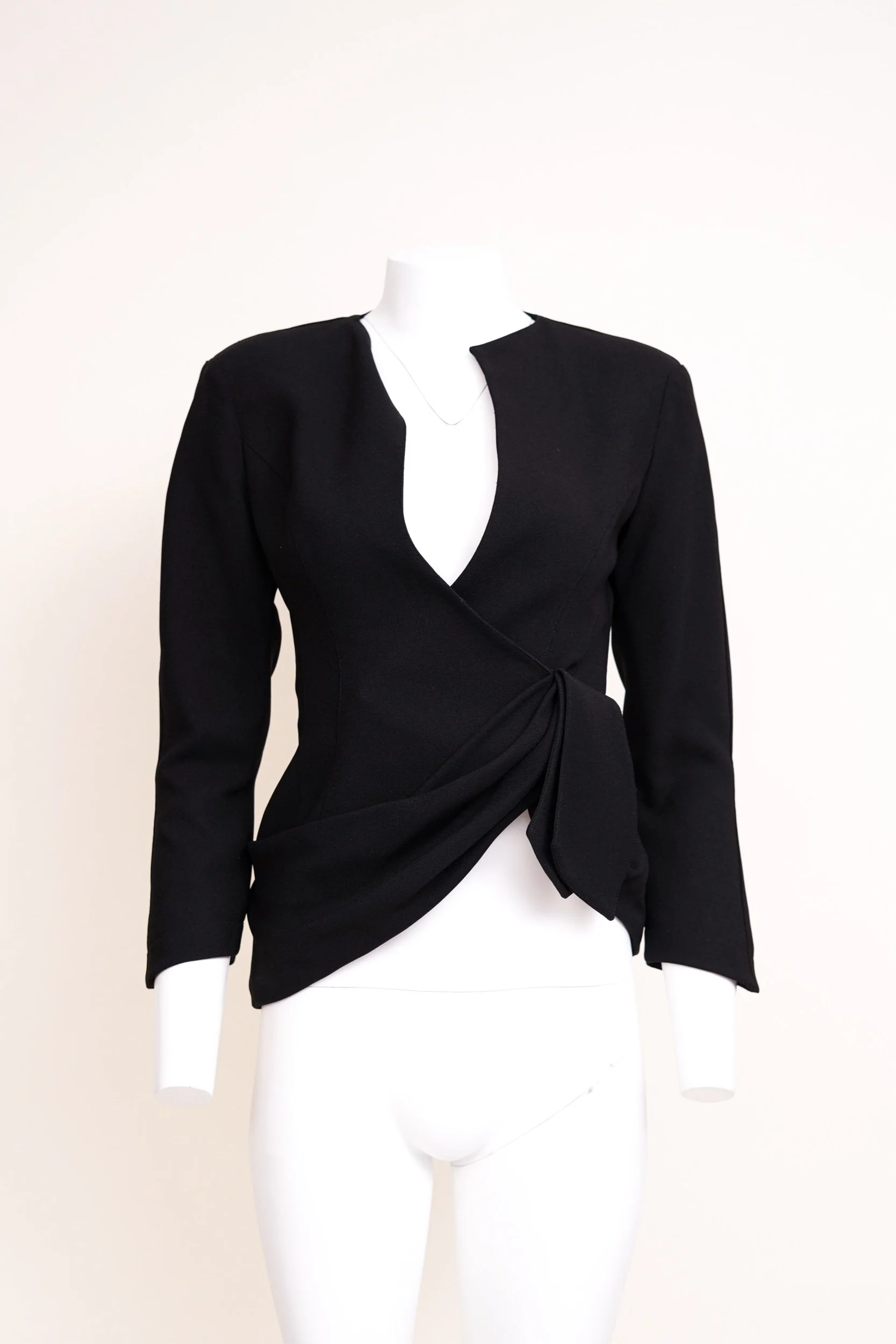 Thierry Mugler 1980s Black Draped Sculpted Waist Jacket