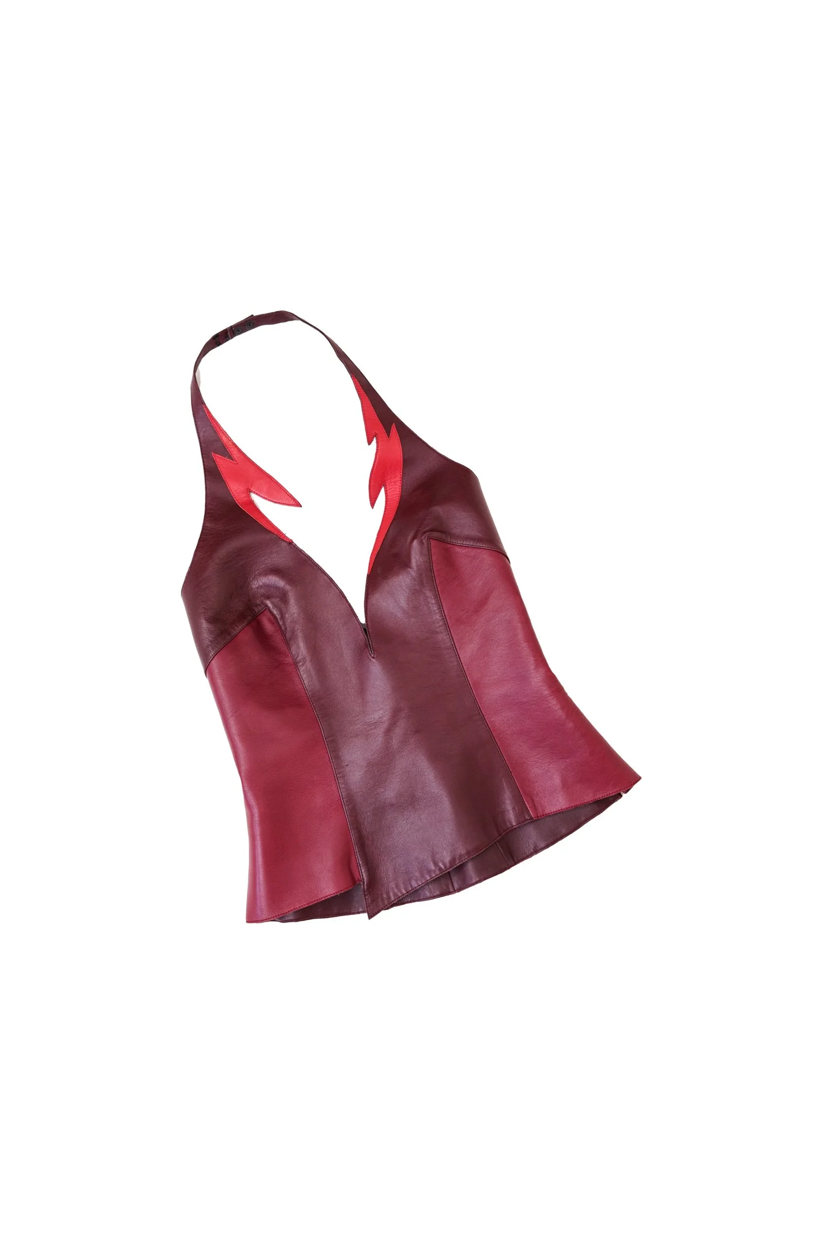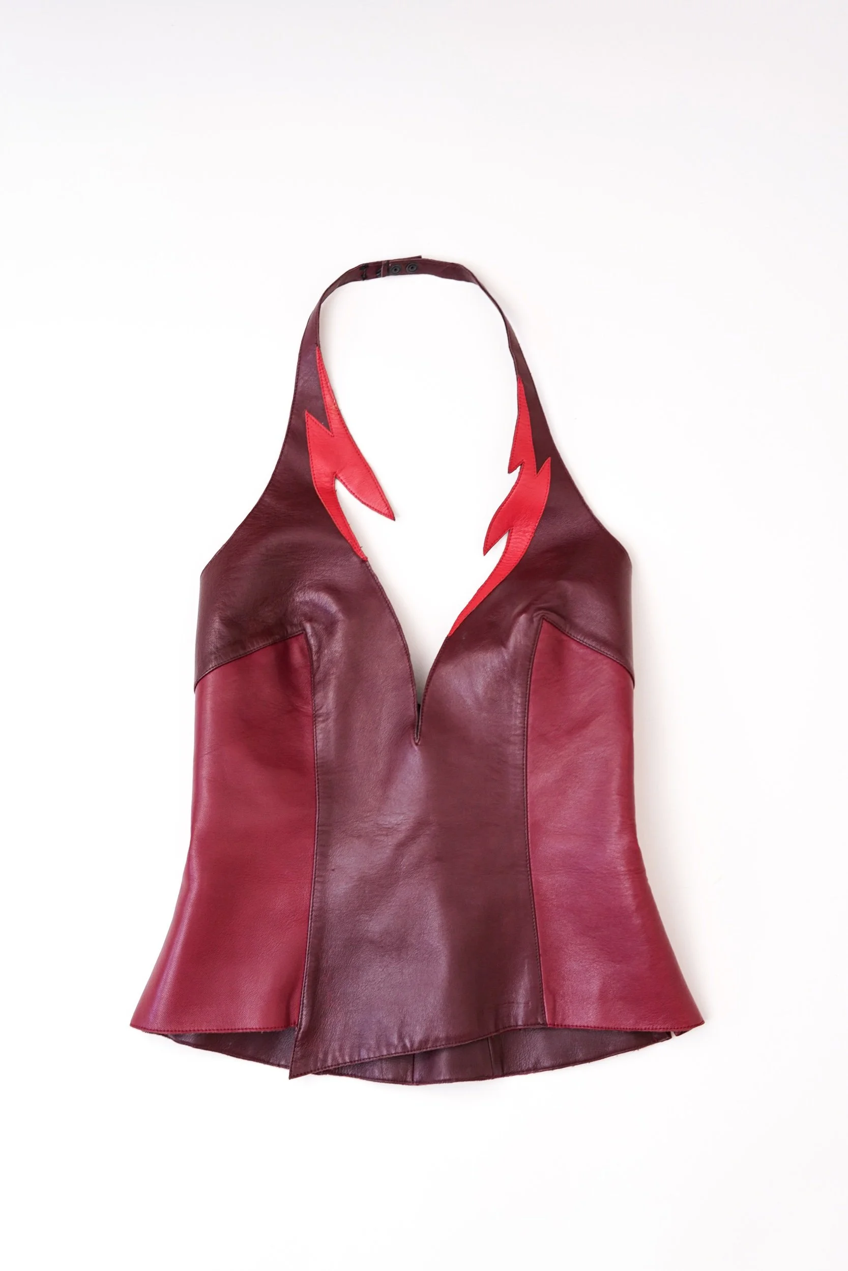 Thierry Mugler Red Leather Lightning Halter Top – Archive Piece